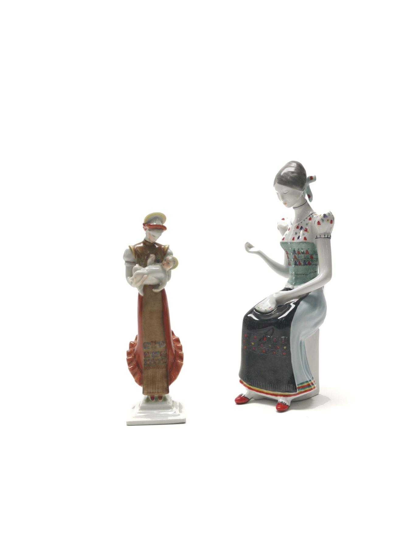 383. Paire de boîtes flanquées d'une figurine de jeune homme en costu...