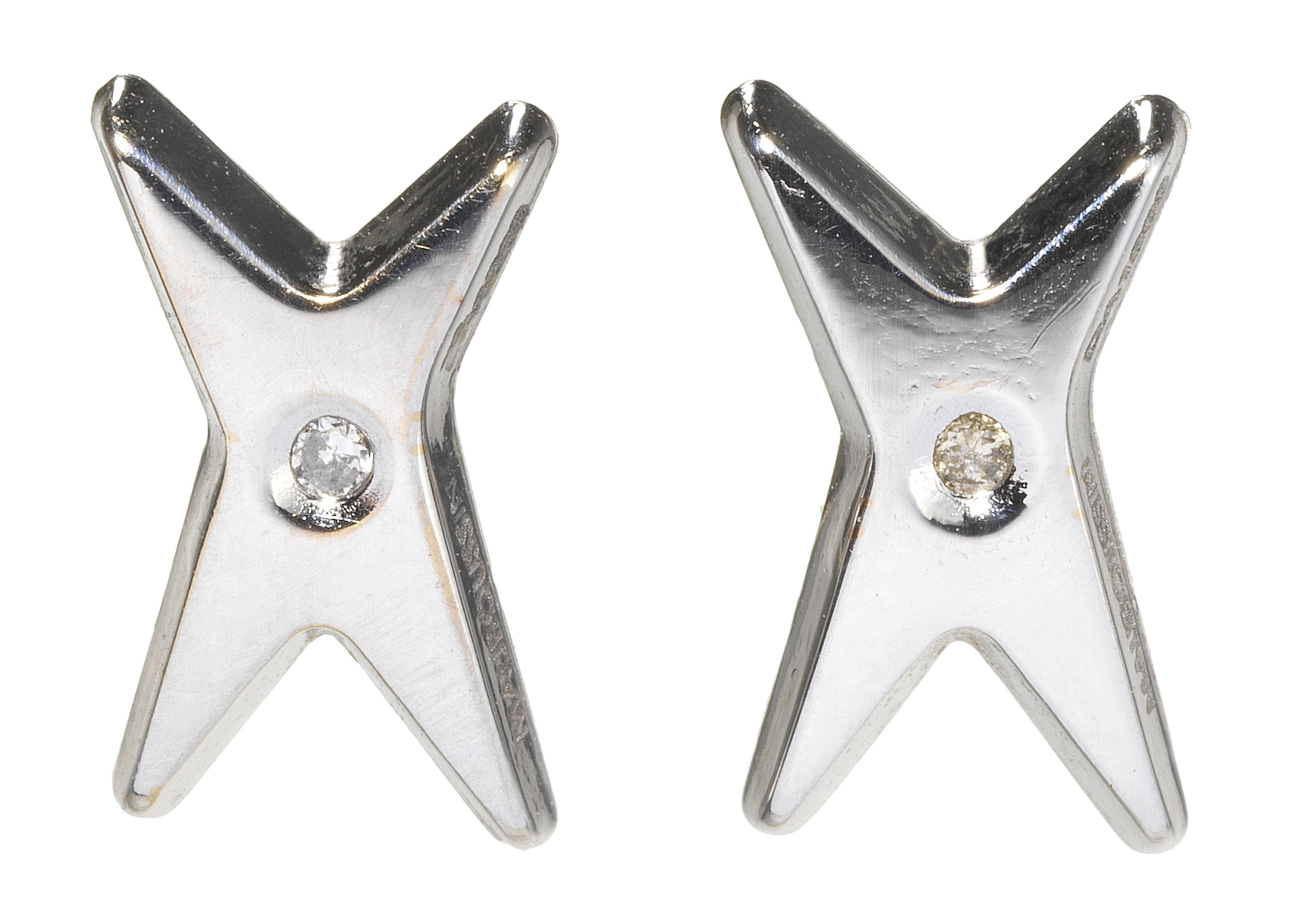 150. Clips d'oreilles pavés de trois lignes de diamants rehaussées de...
