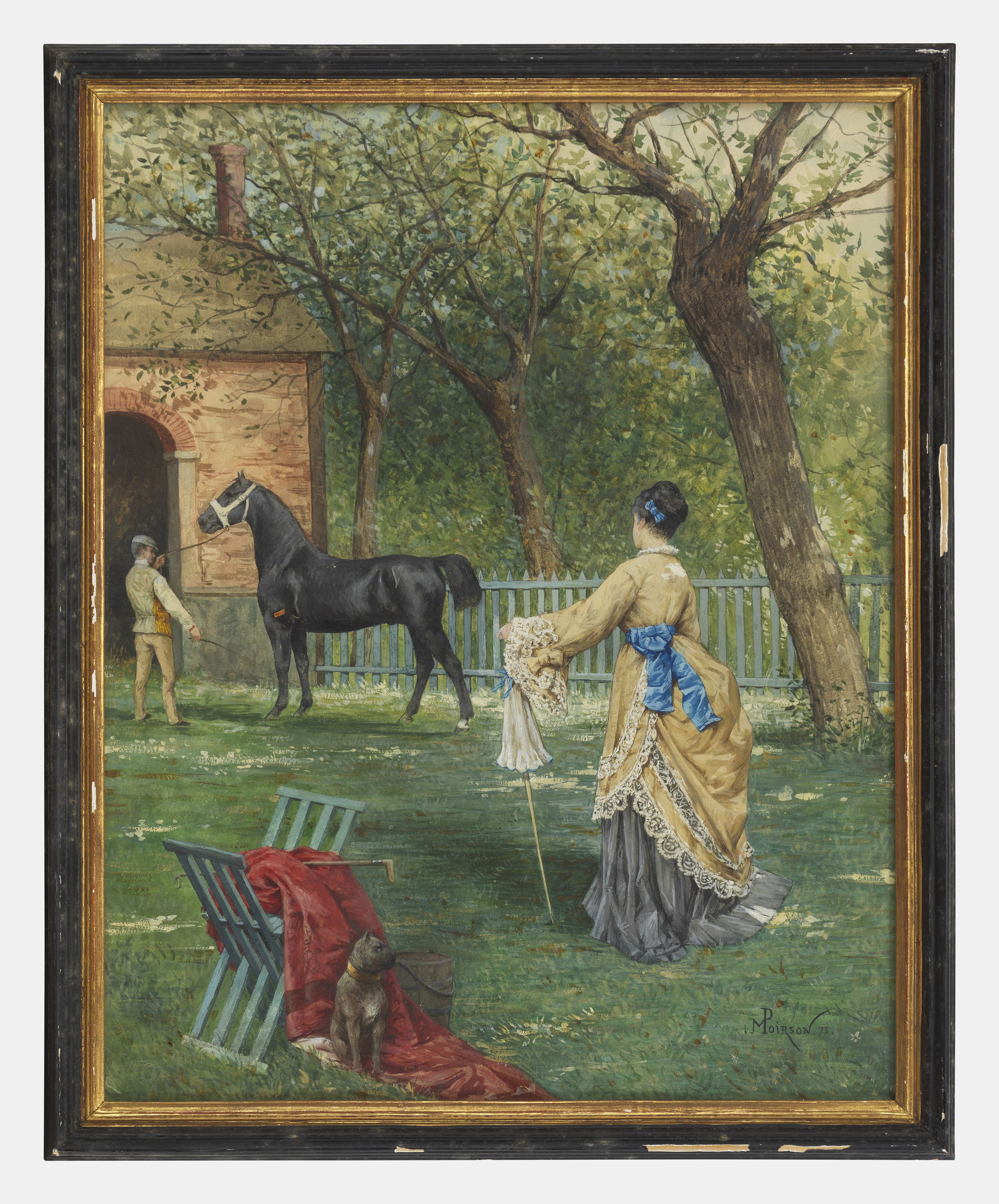 Dame observant un cheval dans le parc, aquarelle, signée, datée (18)73, 48,5x38,5 cm. Provenance: Les Stern, une famille de collectionneurs.
