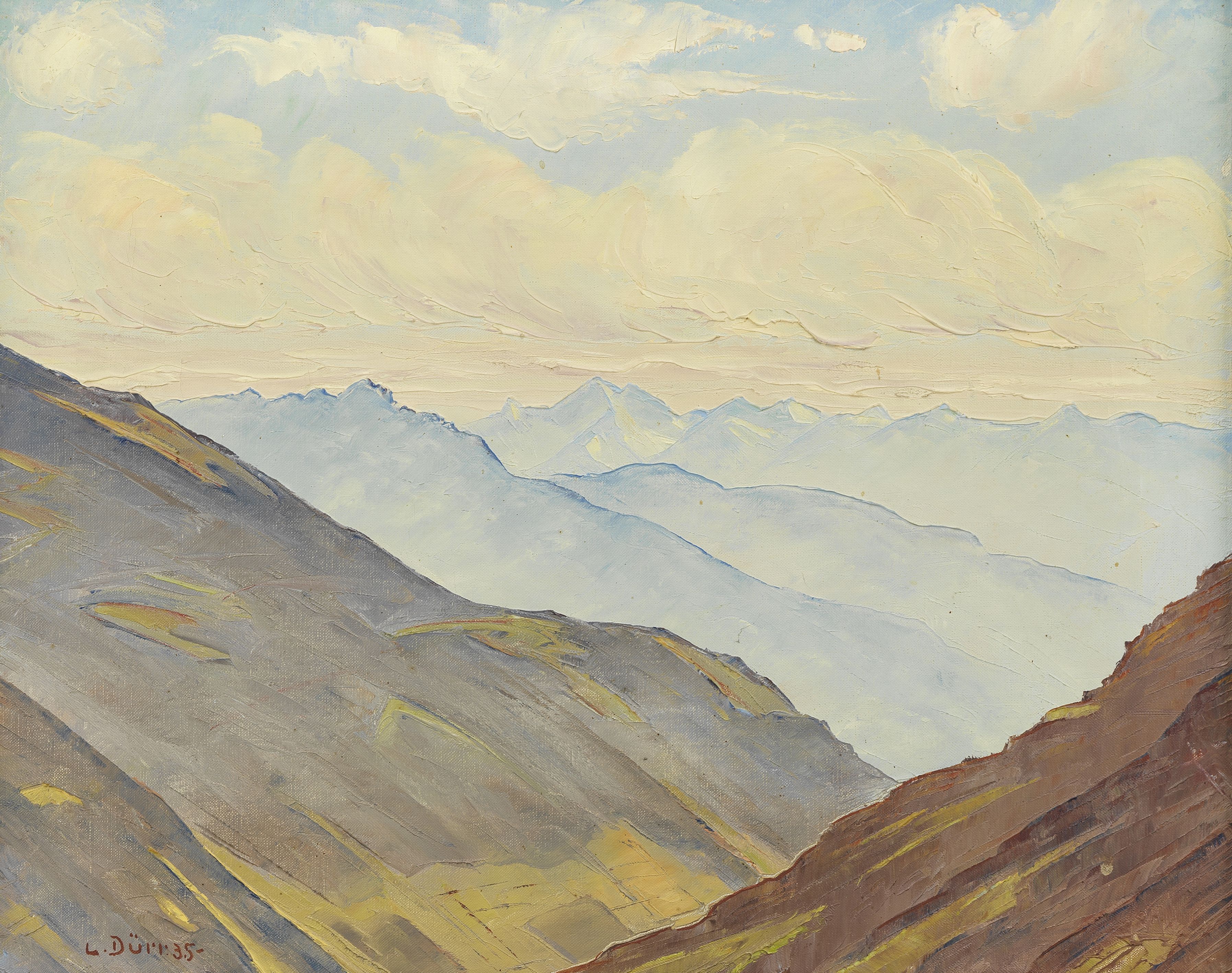 Paysage montagneux, huile sur toile, signée et datée 1935, 42x53...