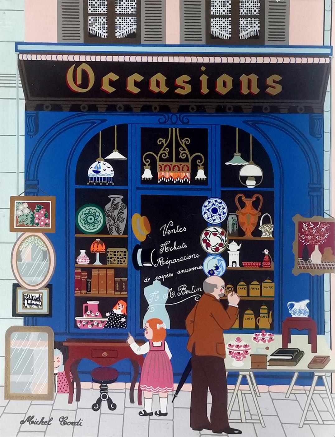 Le brocanteur, huile sur toile, signée, 35x27 cm
