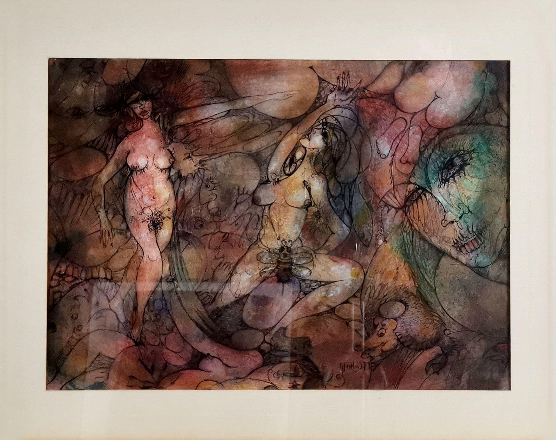 Saint Jean à l'écoute de Dieu, dessin, signé et daté 72, 27x21 c...