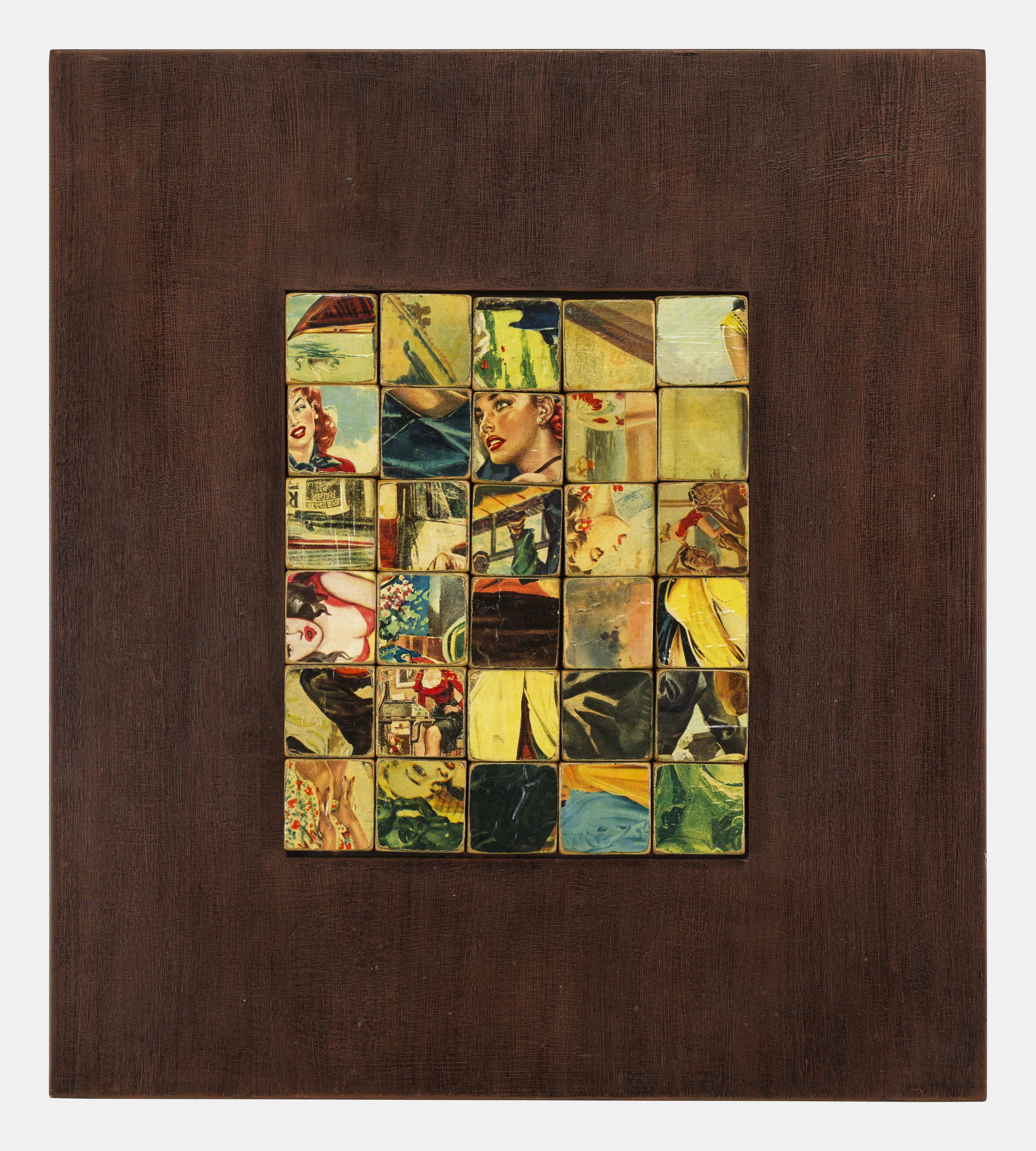 Deux tableaux-volumes, sans titre, techniques mixtes, signées et datées au dos, 65x59 et 69x63,5 cm