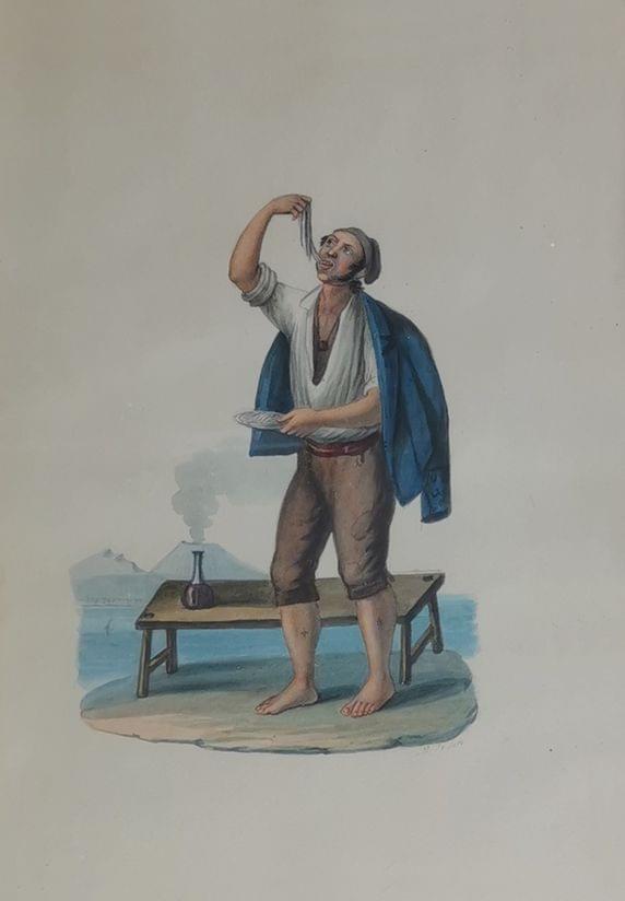 Marchande de rue et pêcheur napolitains, deux aquarelles sur papier, signées, 30x22cm