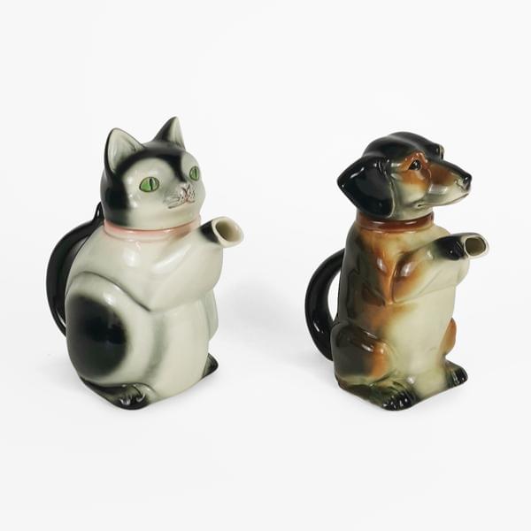 4495. Deux pichets zoomorphes figurant un chat et un chien, Allemagne,...