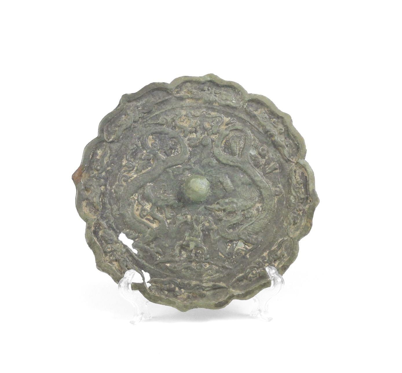 Fronton à deux volutes et centré d'un médaillon au personnage ca...