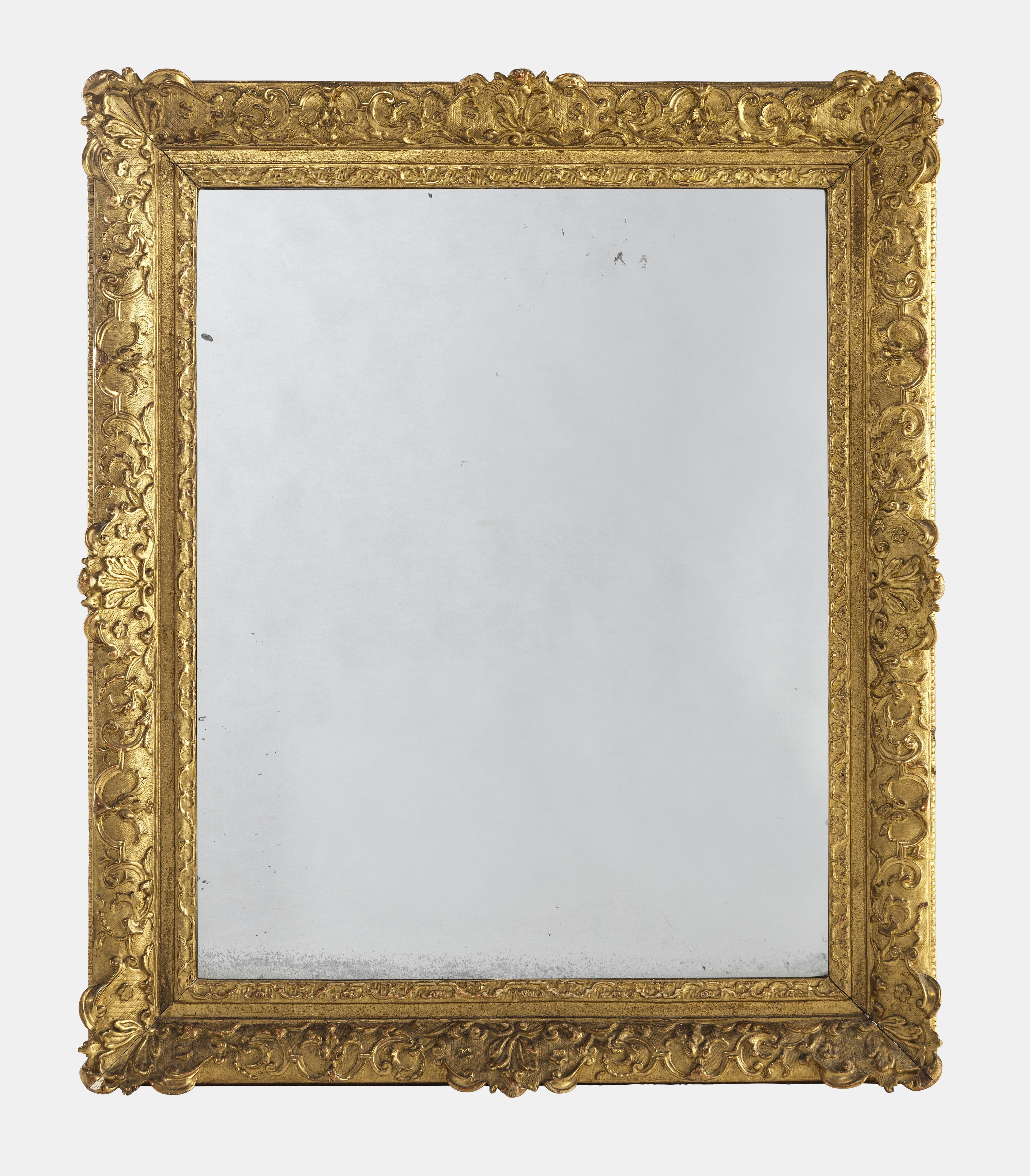 Bois sculpté doré, glace ancienne, 111x93 cm