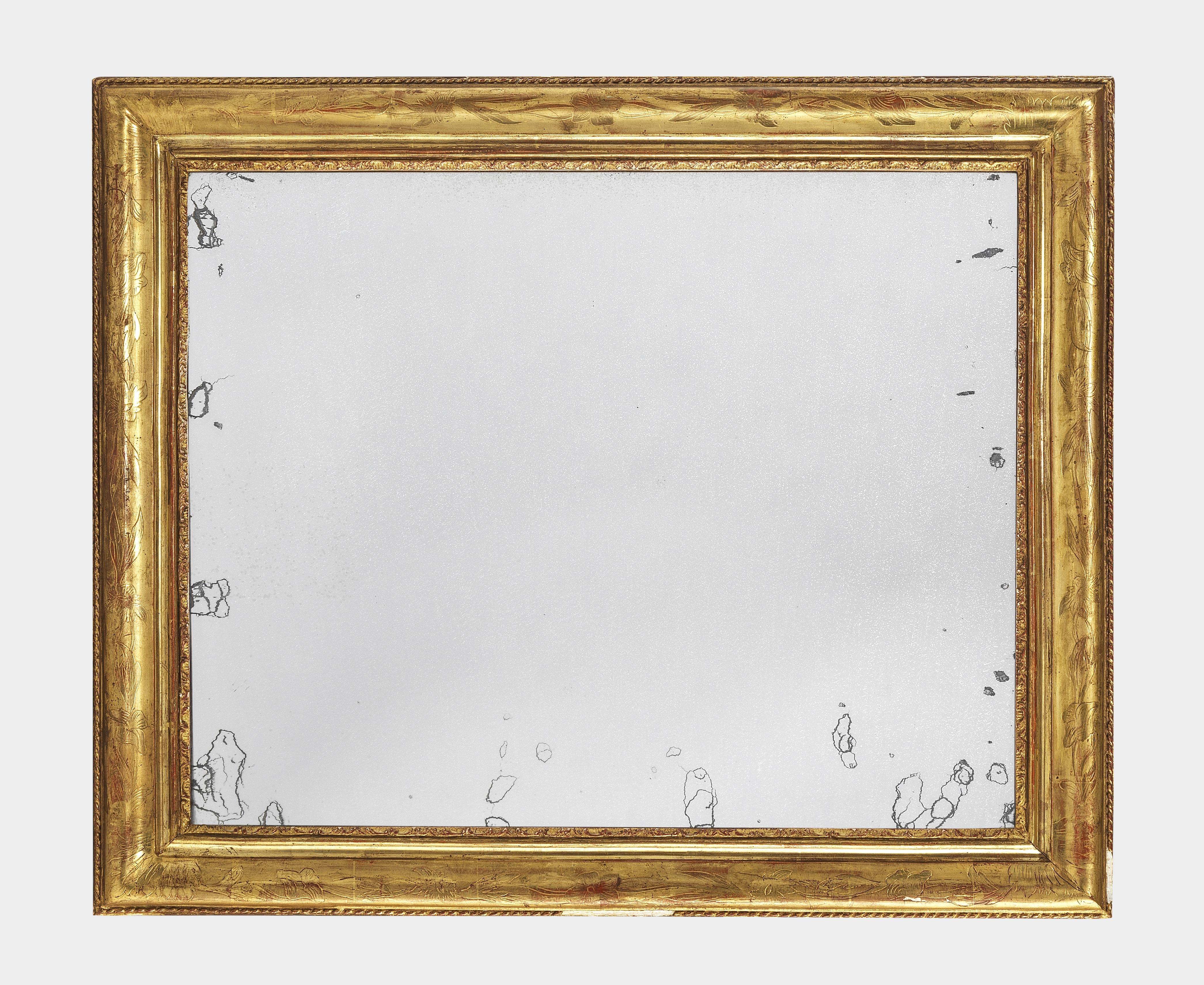 Bois stuqué et doré, à motif ciselé de feuillage, glace au mercure, 67x57 cm