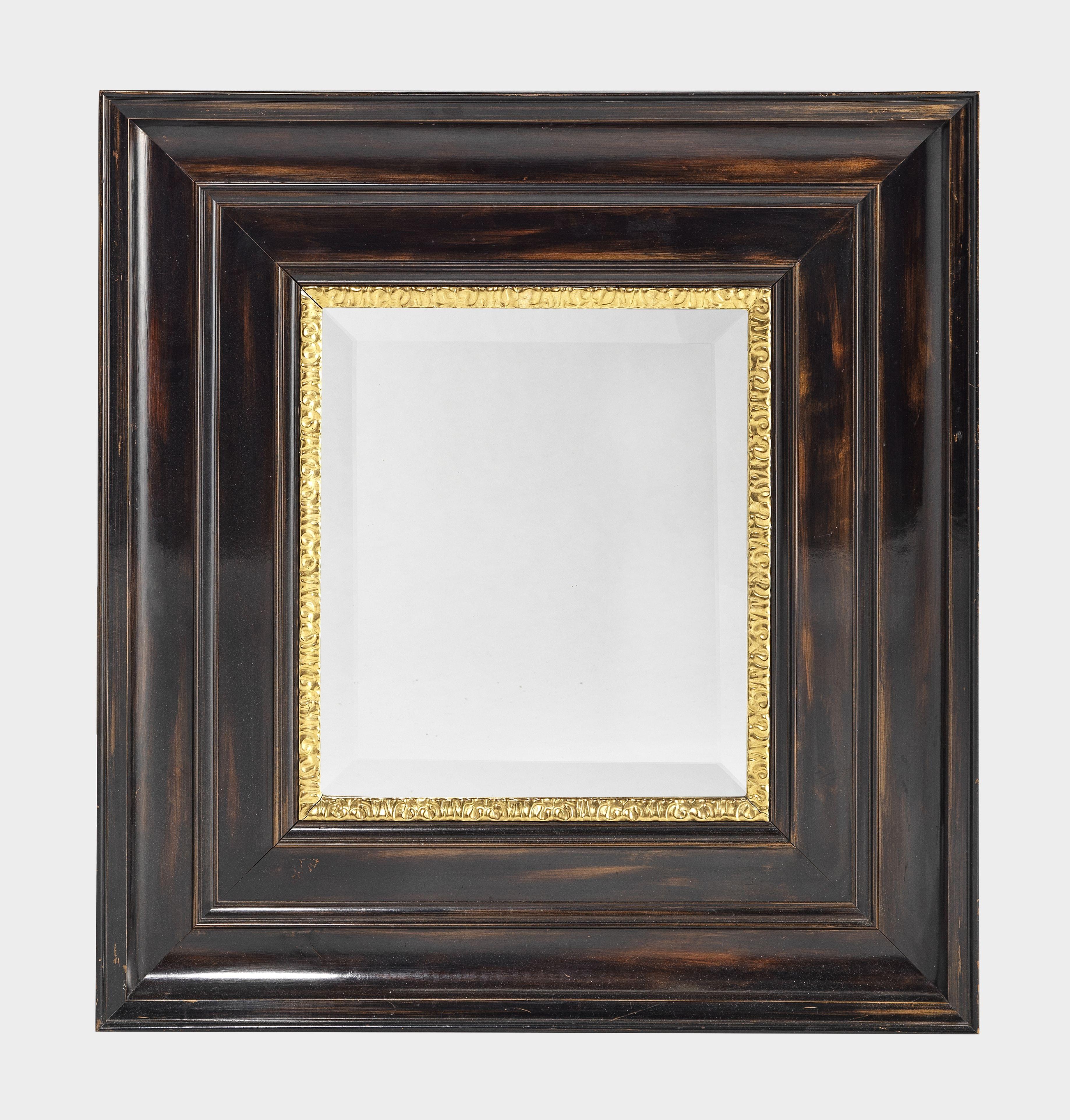 Bois noirci, frise en stuc doré et glace biseautée, 72x65 cm