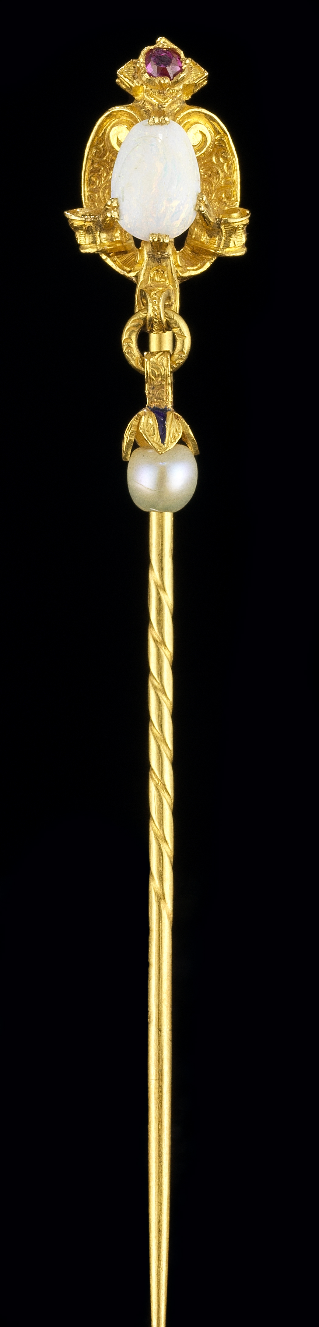 4114. Epingle à cravate sertie d'une opale à fond blanc