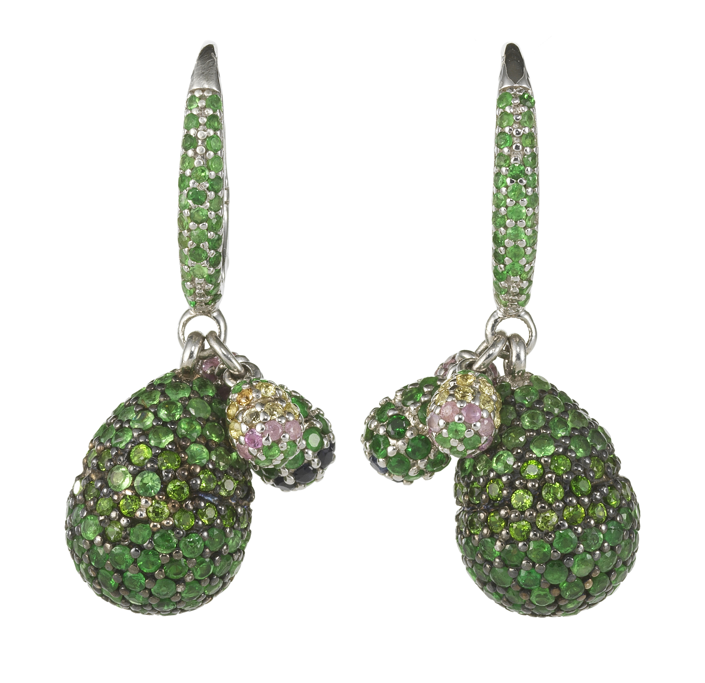 4268. *Pendants d'oreilles retenant chacun un œuf pavé de tsavorites