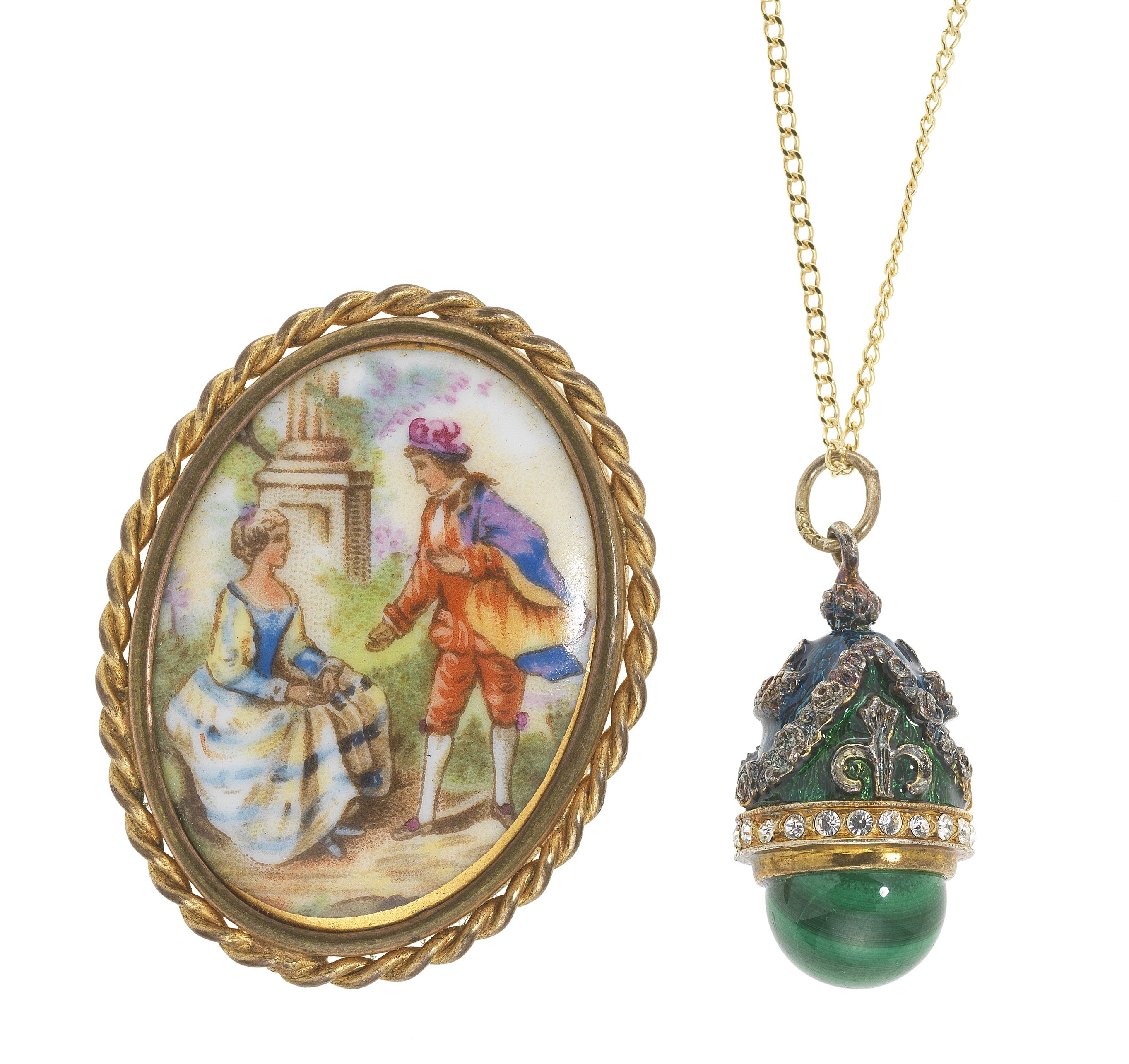 Serti d'une malachite et de pierres d'imitation, retenu par une...