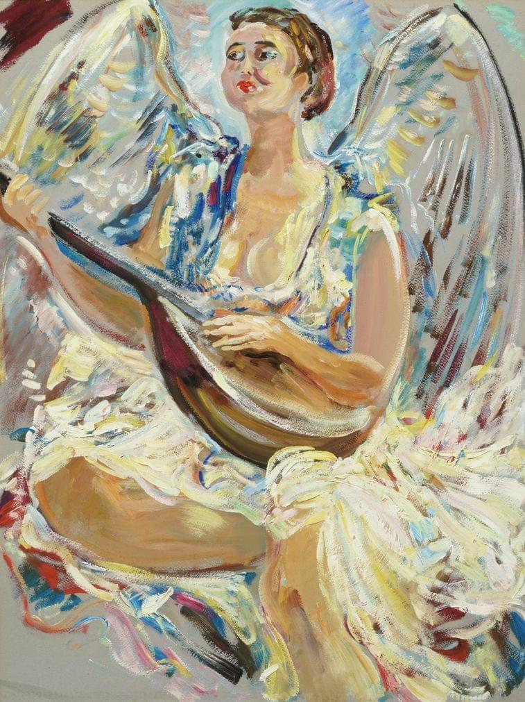 Ange musicien, gouache et aquarelle sur papier, 63x48 cm