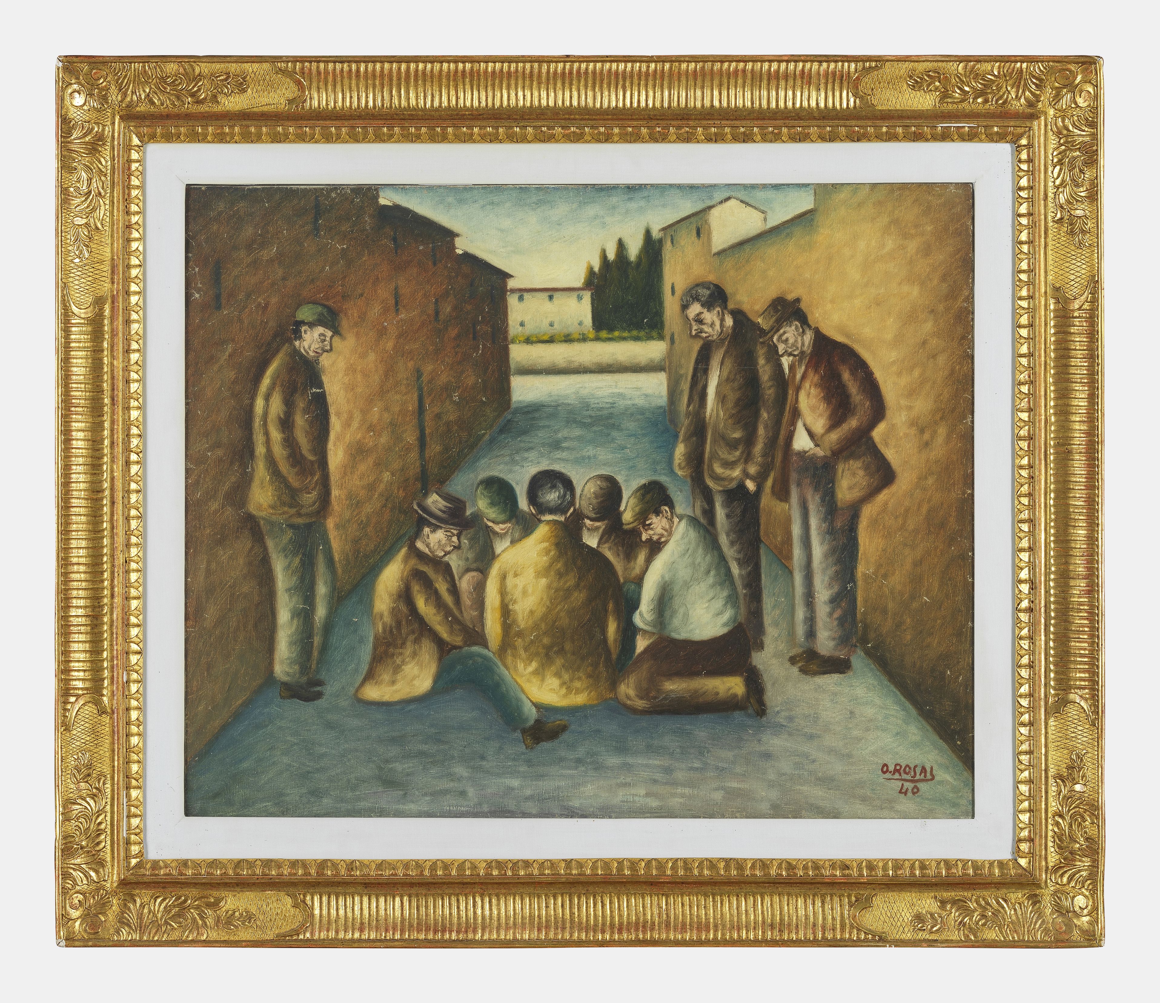 Joueurs de dés, huile sur toile, signée et datée 40, 79x98 cm