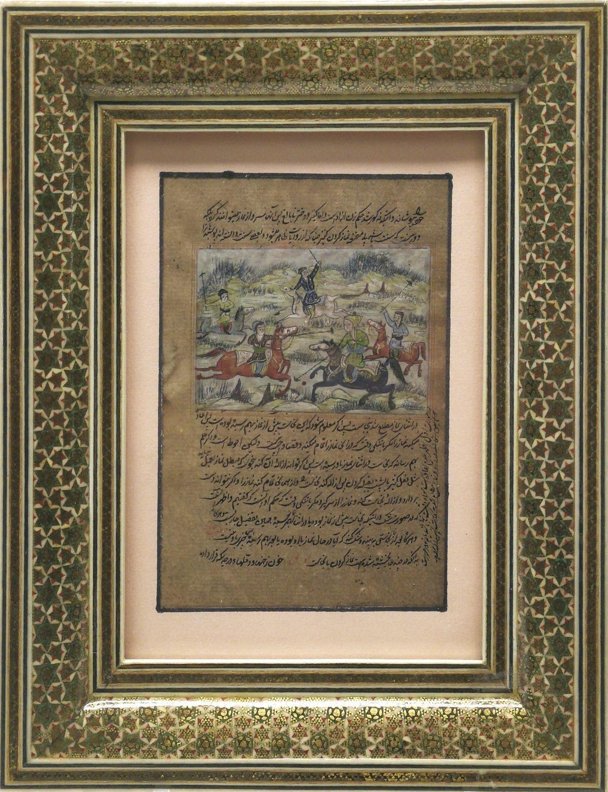 Encre et pigments sur papier à décor d'une scène de bataille, 14x10 cm