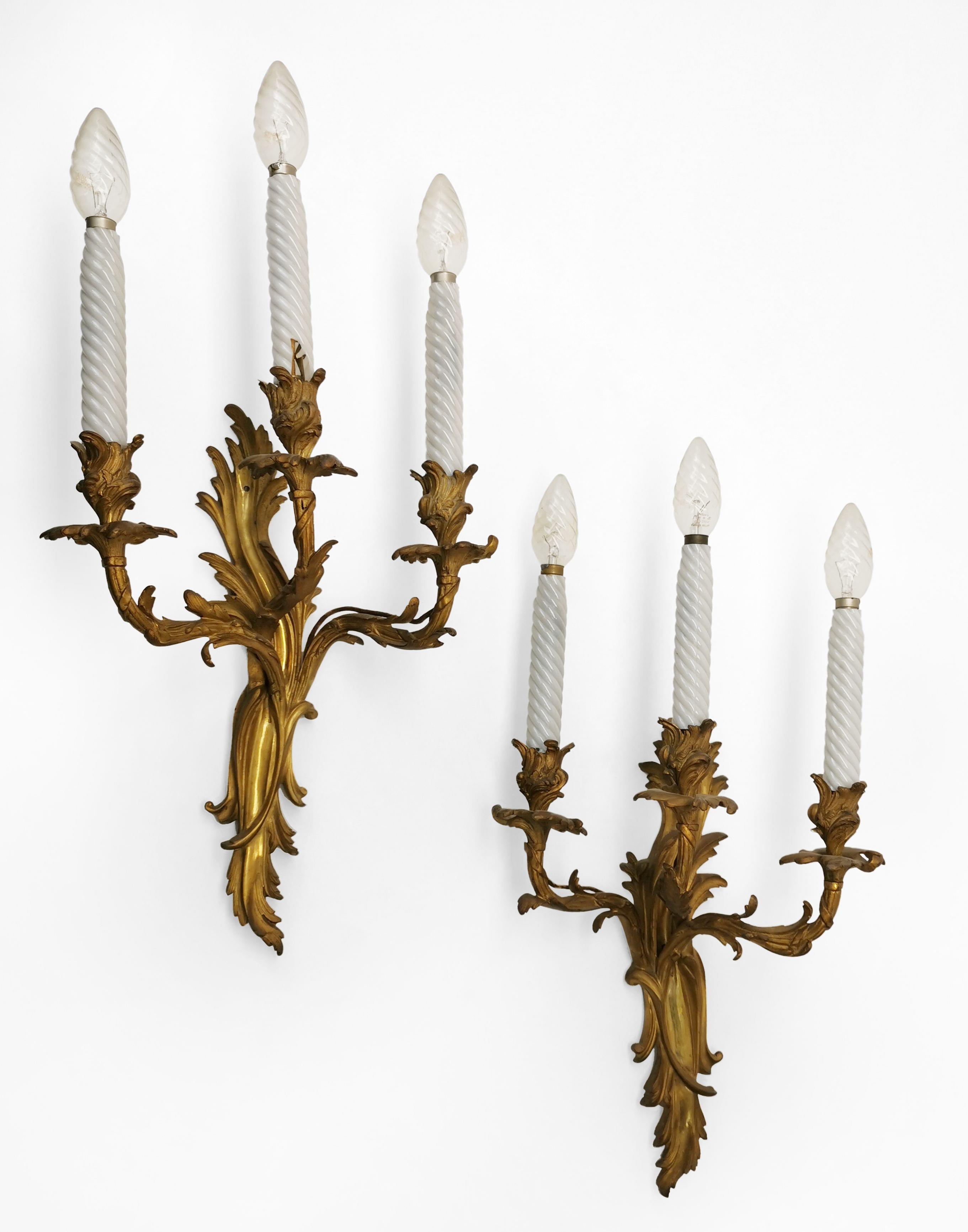 5336. Paire d'appliques à trois lumières de style Louis XV