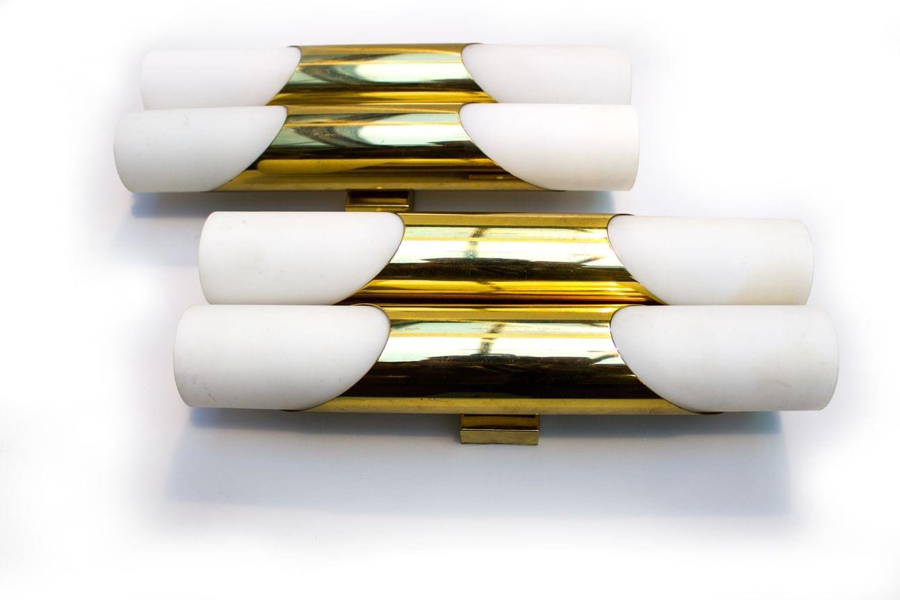 Formés de deux tubes lumineux en verre sablé, monture en laiton doré, circa 1970, H 35 cm