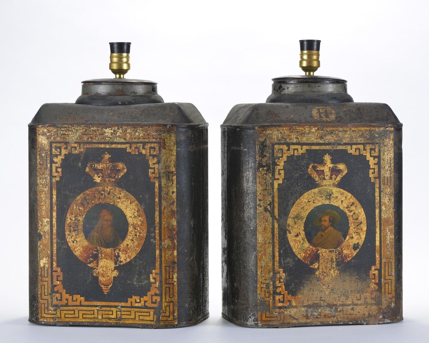Tôle à décor de personnages sur fond noir et or, fin XIXe s, 45x31x24 cm
