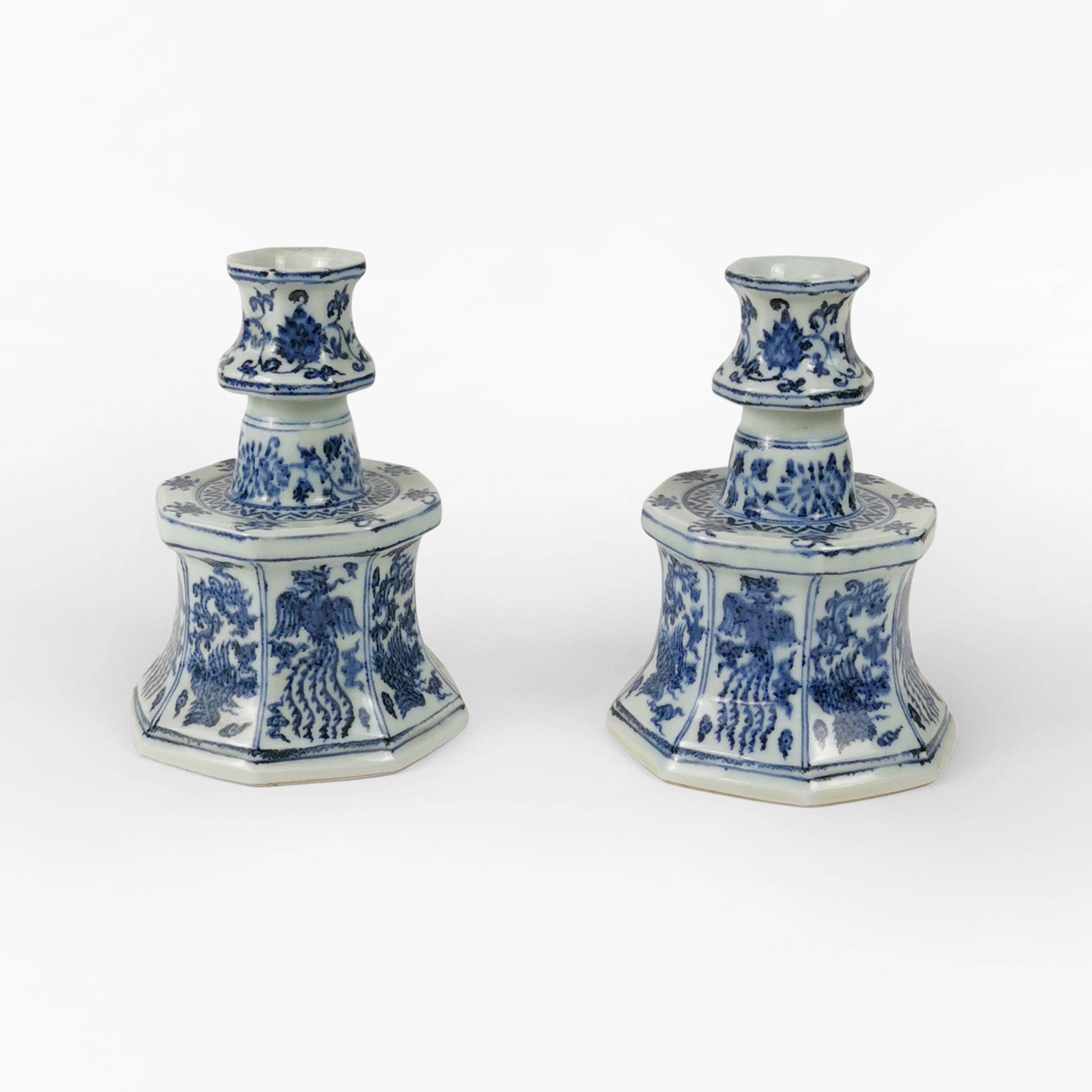 Porcelaine émaillée bleu blanc à décor de phénix, H 22 cm