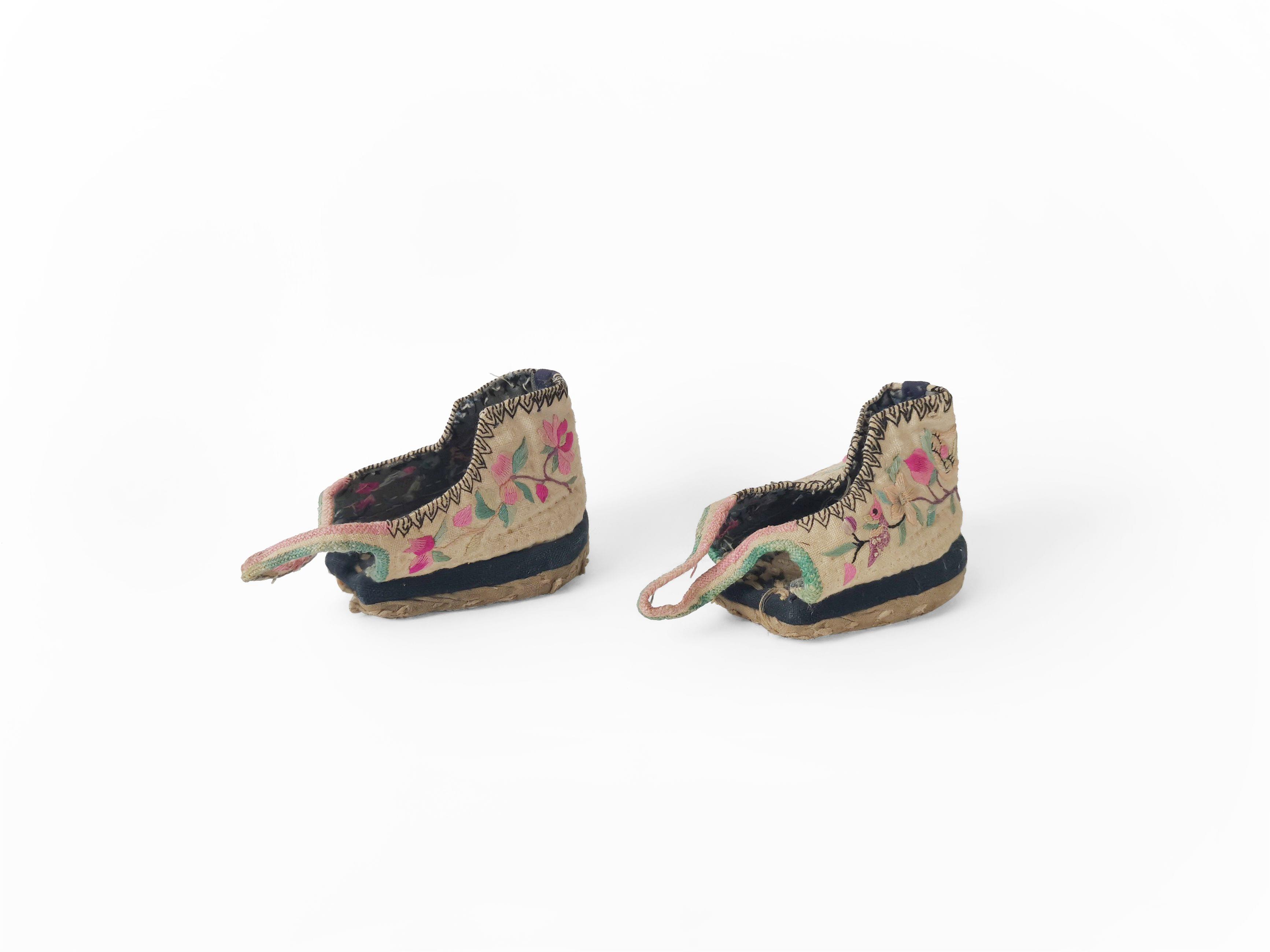 Broderie en soie représentant des fleurs et des pêches, H 8 cm
