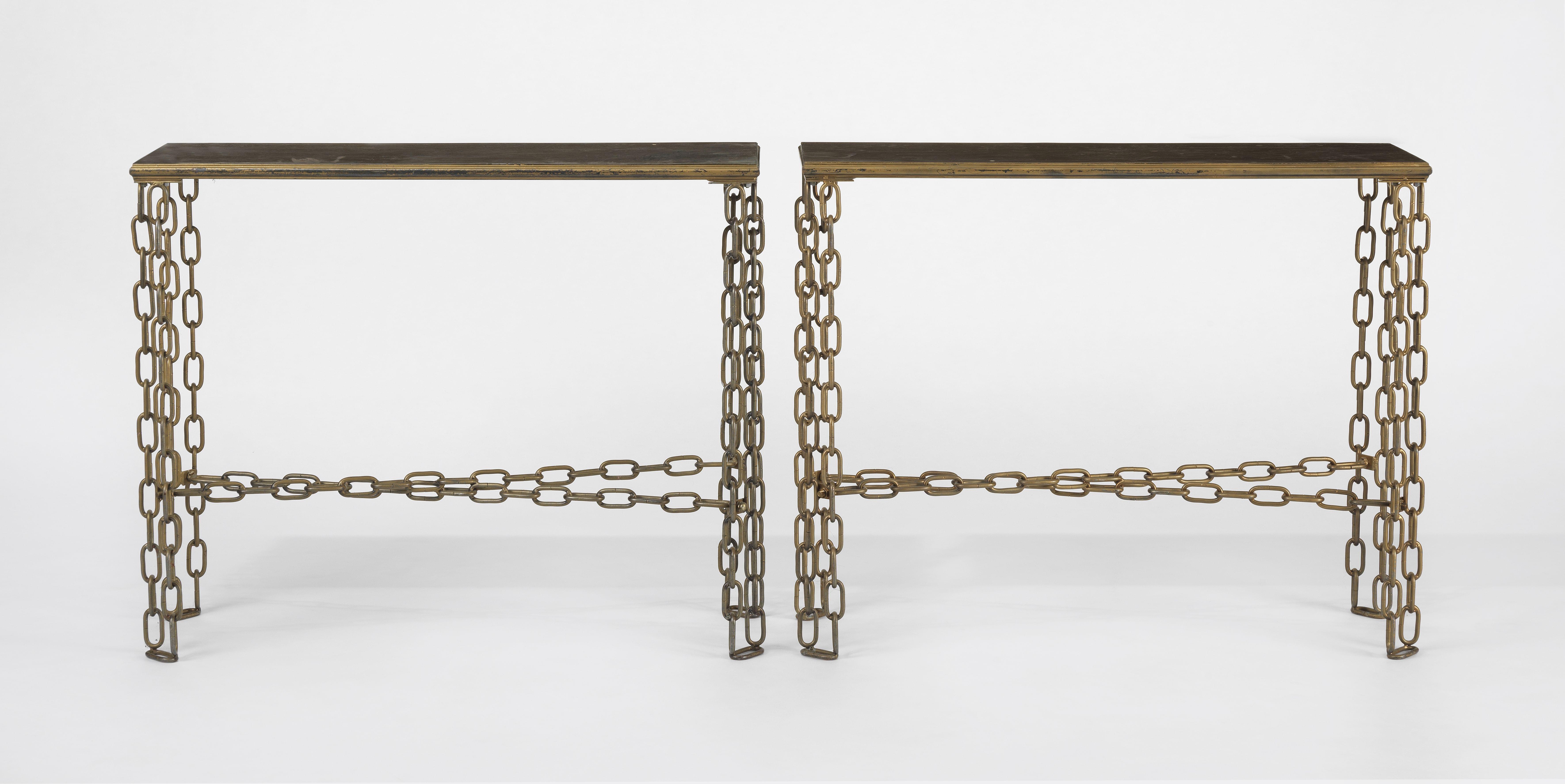 5511. Paire de consoles à piètement chaîne