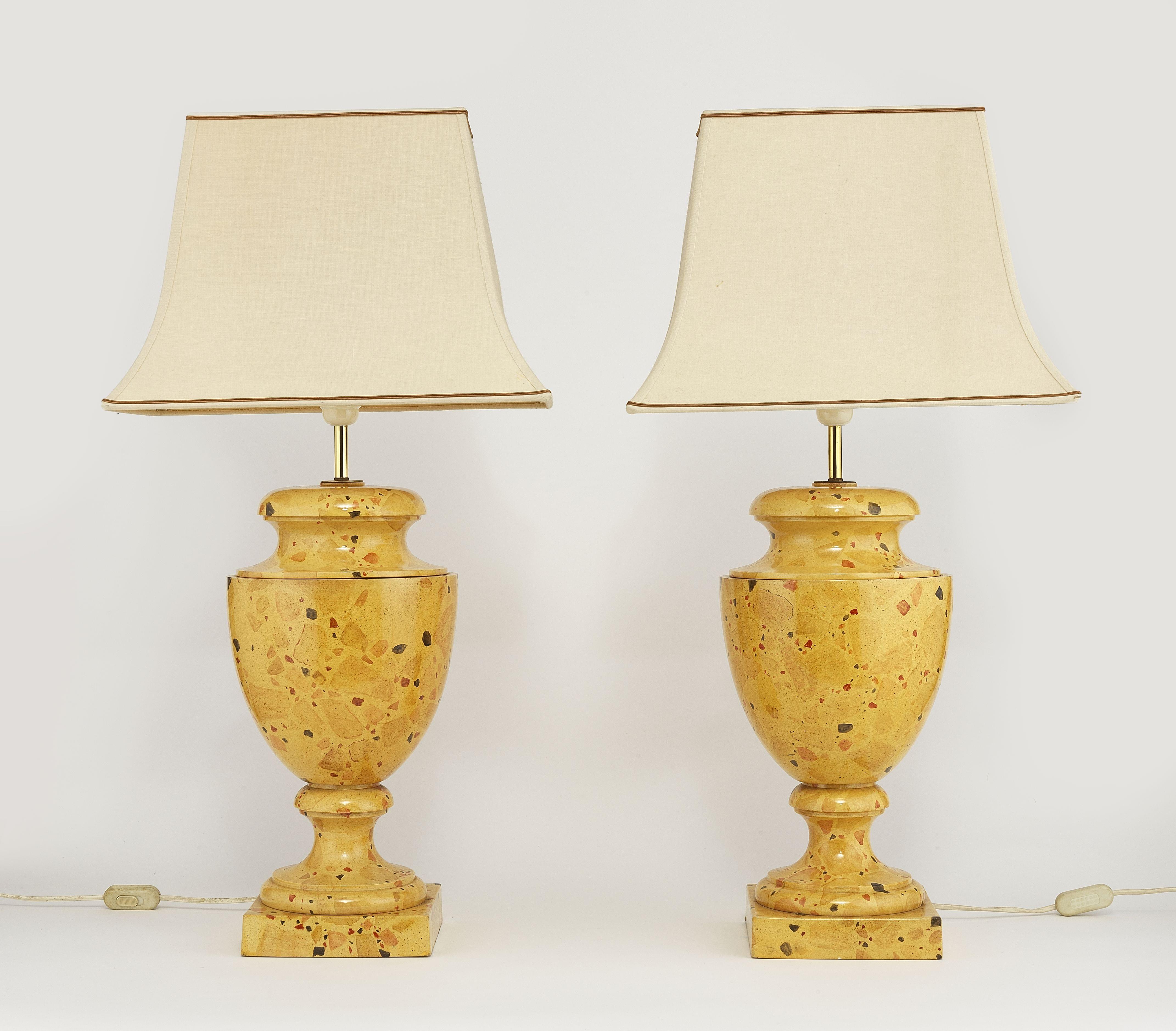 Peintes façon faux marbre de Sienne, H 55 cm