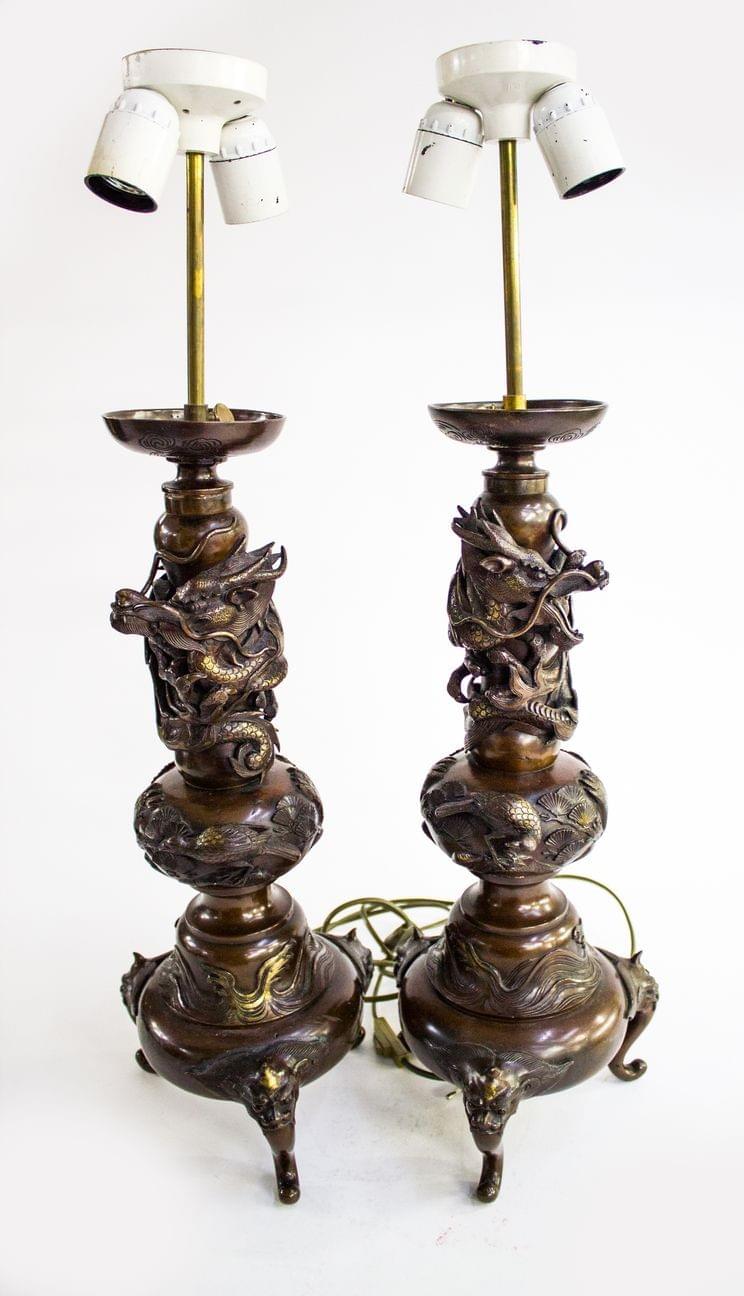 Bronze à patine brune à décor d'oiseaux et dragons, Chine, fin XIXe s