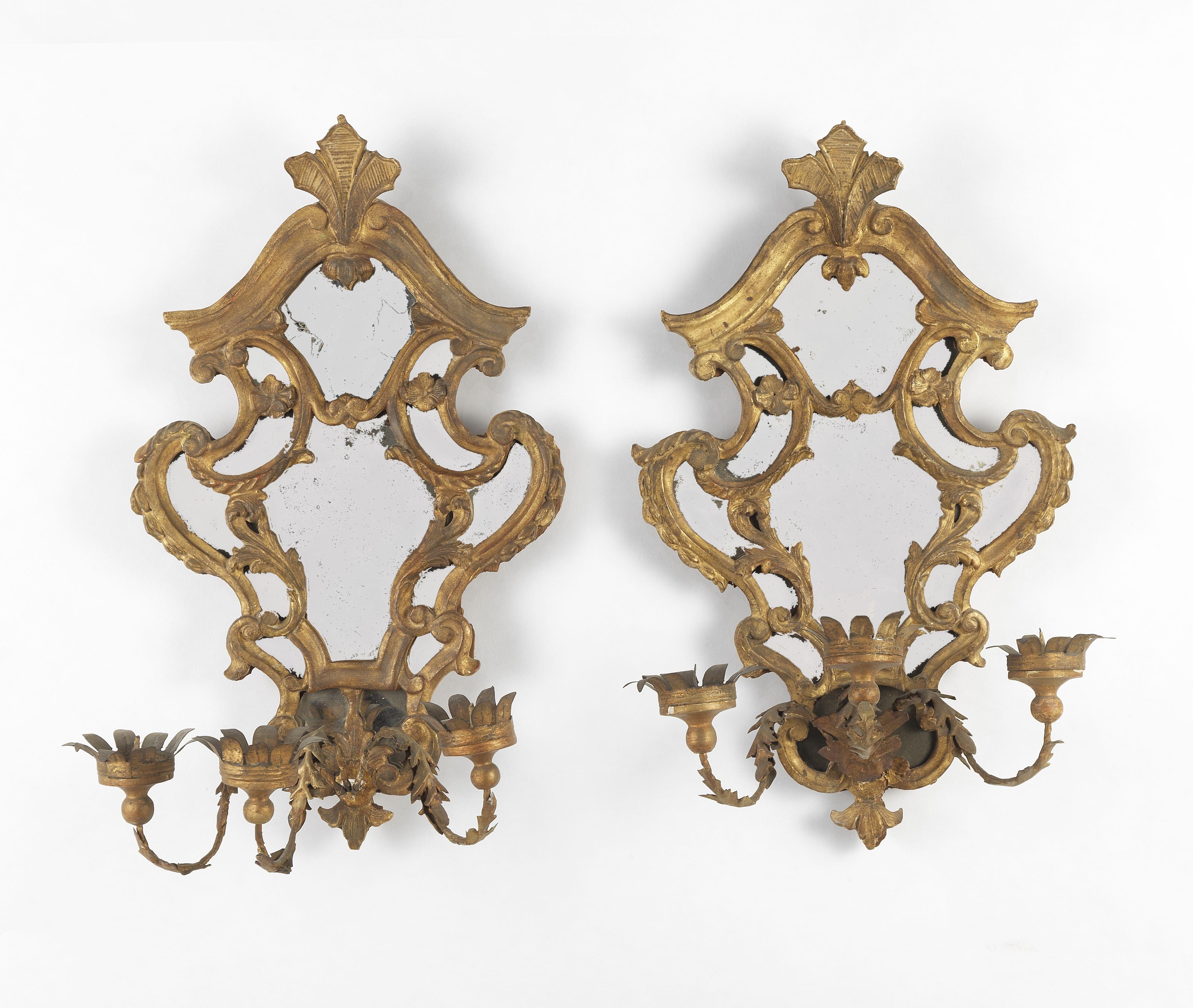 5217. Paire de miroirs rocaille à trois lumières, Italie, XVIIIe s