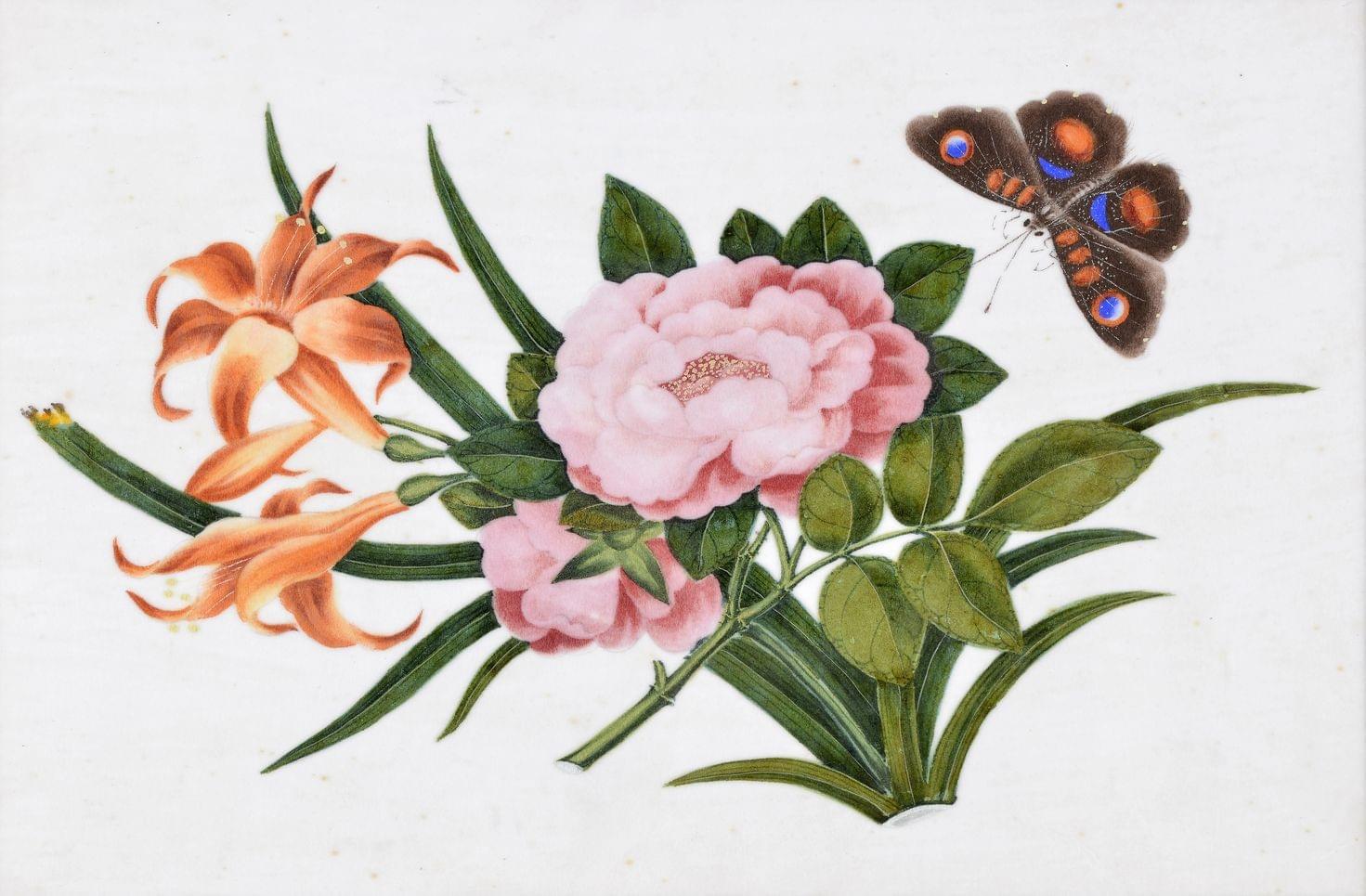 3301. Paire de papiers de riz à décor de papillons et fleurs