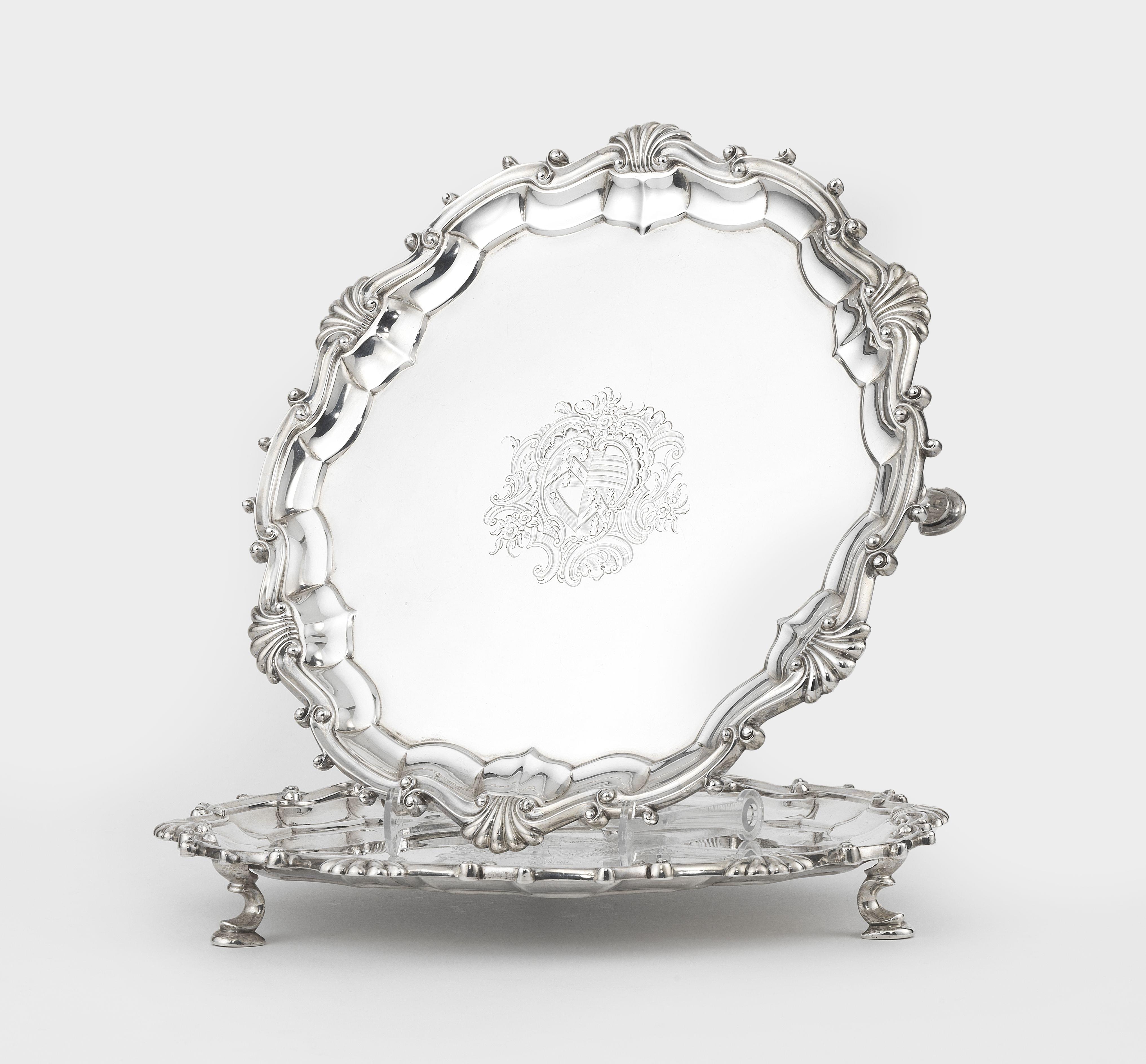 3831. Paire de plateau de présentation armoriés tripodes d'époque victorienne