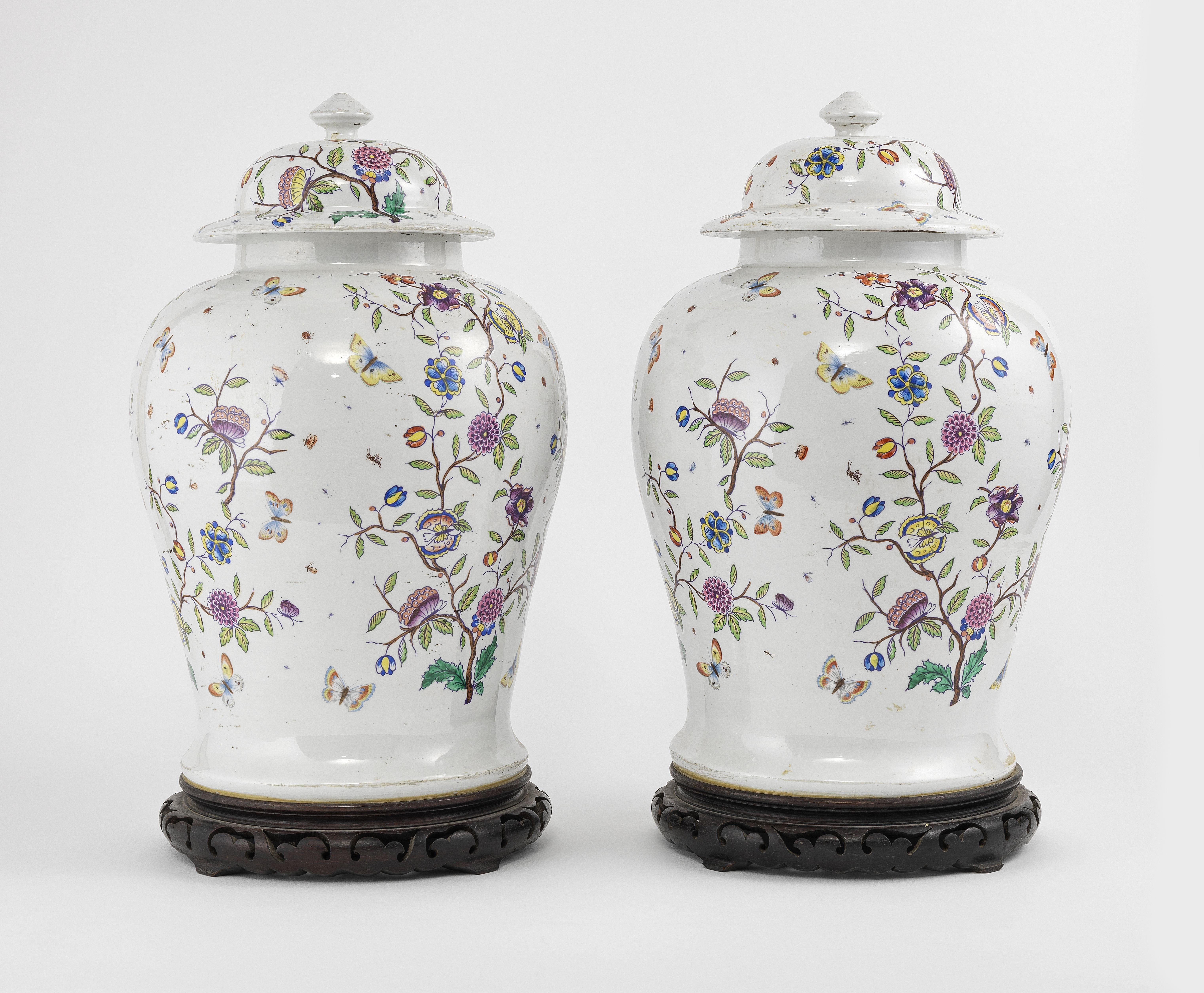 Porcelaine à décor imprimé et rehaussé à motifs de fleurs, H 39 cm