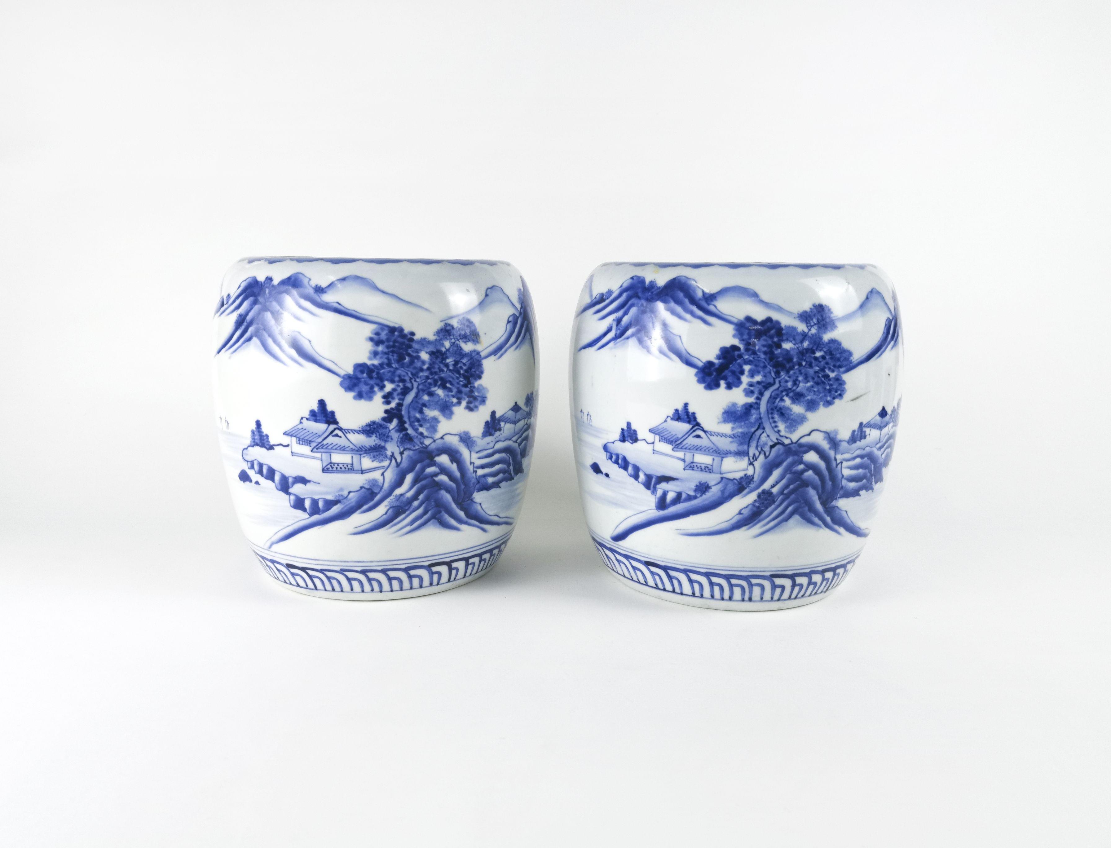 Porcelaine bleue et blanche à décor de paysages, H 24 cm