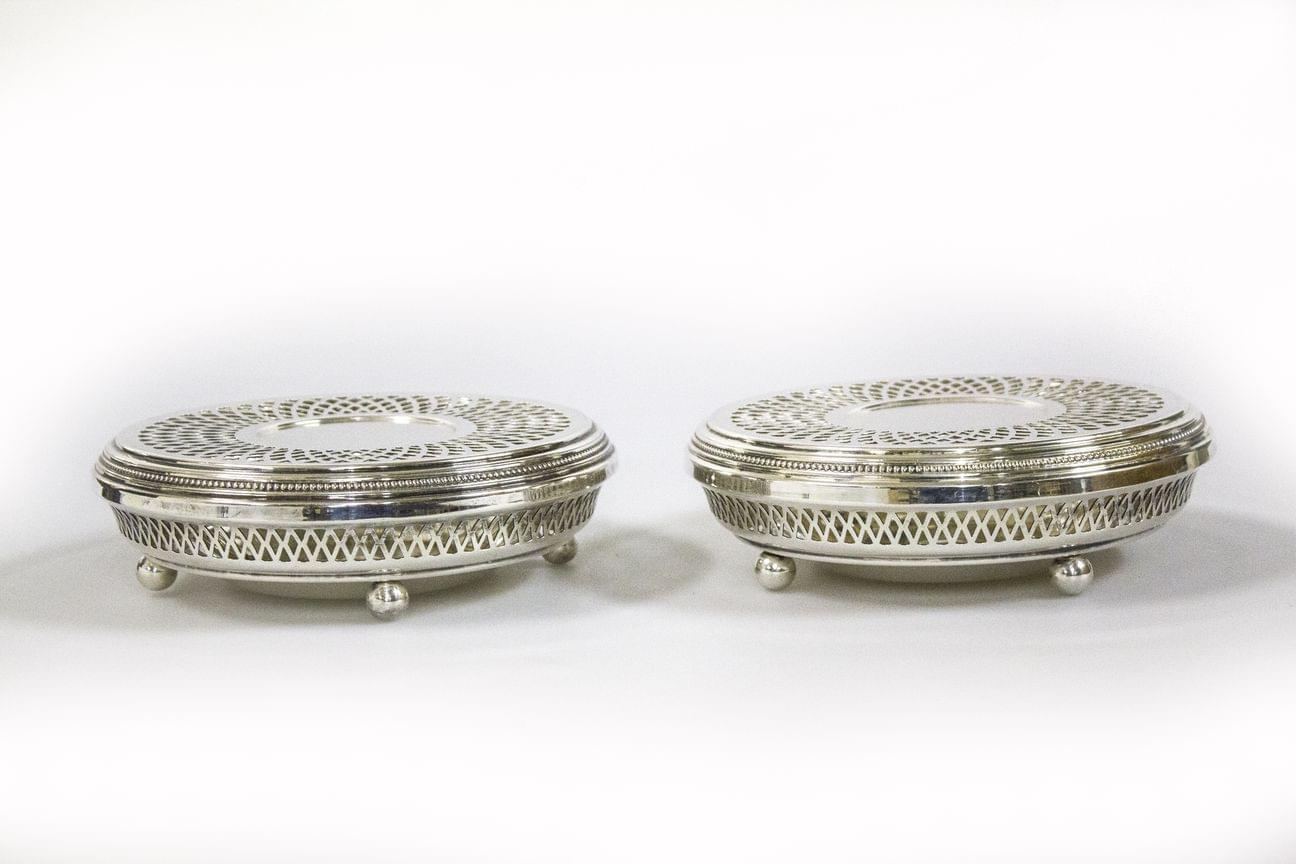 3267. Paire de réchauds circulaires à motif de treillis et perlettes