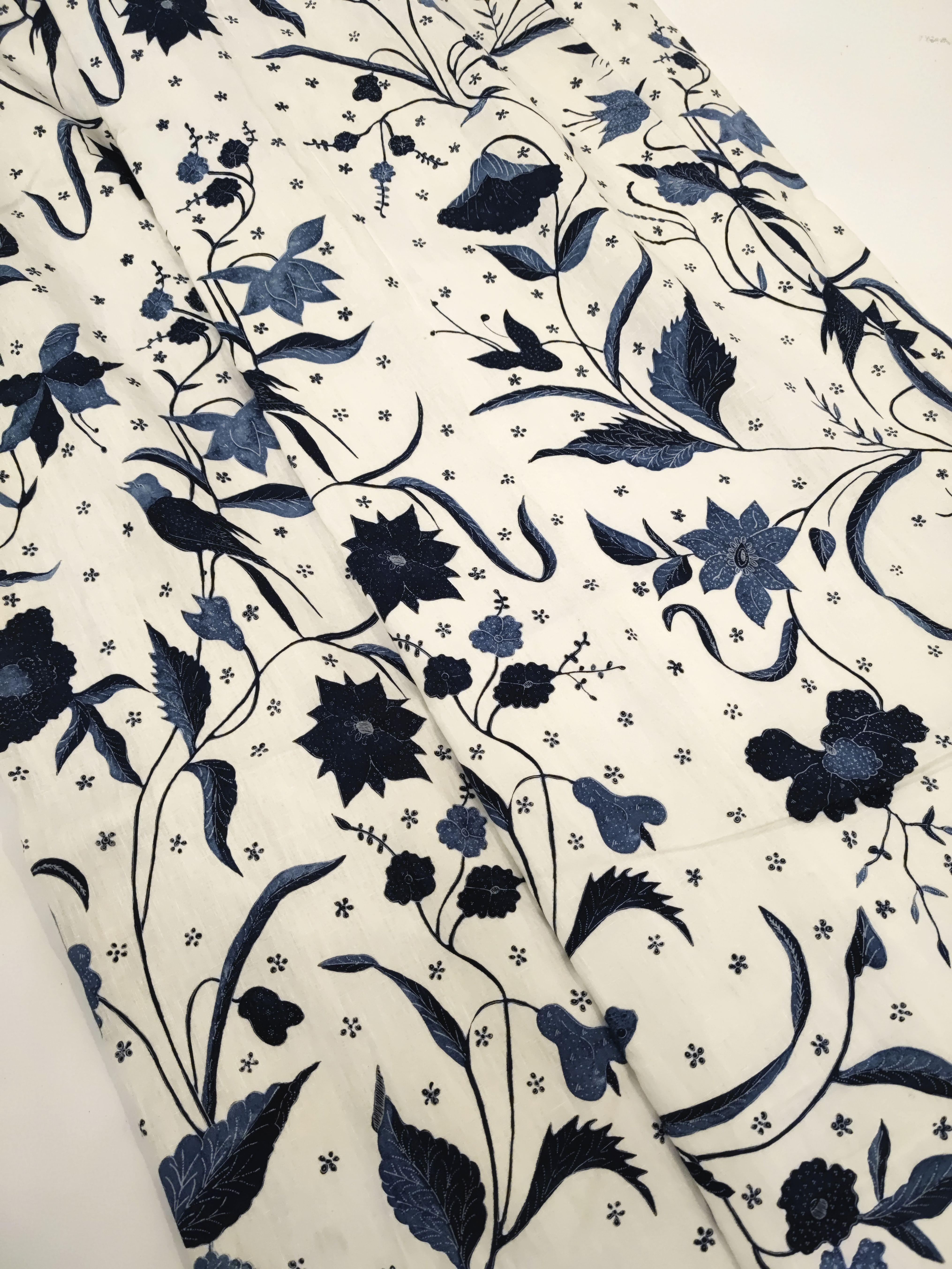 4474. Paire de rideaux à motif blanc bleu de grues et fleurs