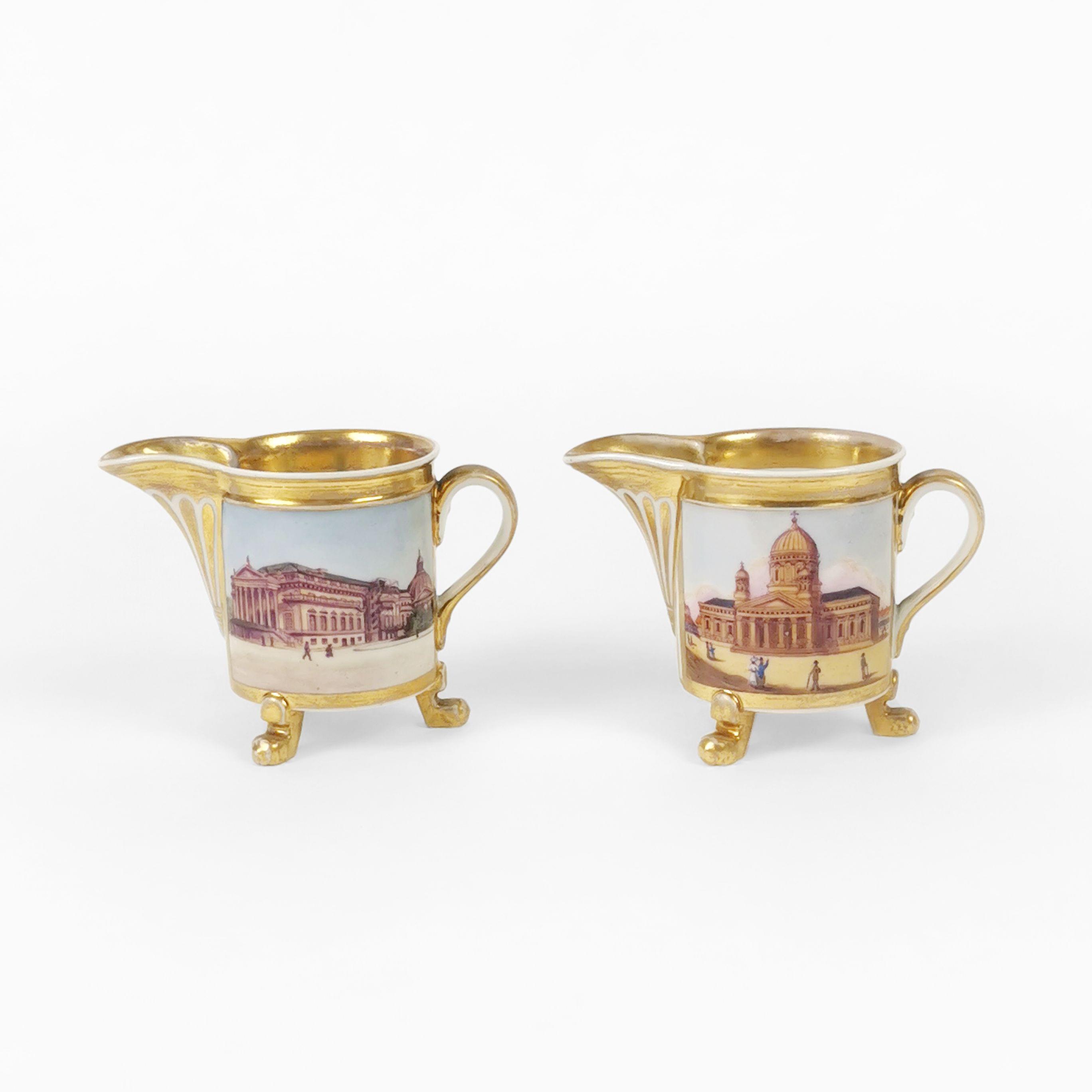 Porcelaine émaillée polychrome à motifs de vues urbaines, H 6,5 cm