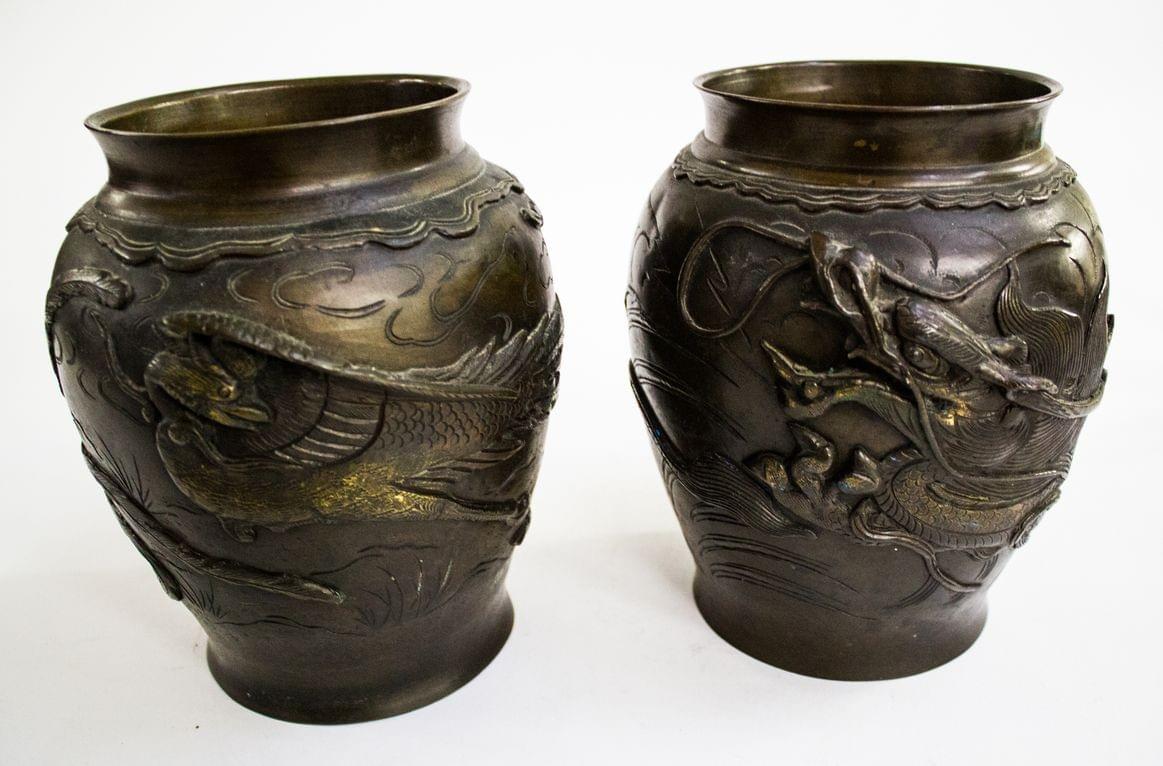Bronze ciselé à décor de dragons, Japon, fin XIXe s, H 21 cm