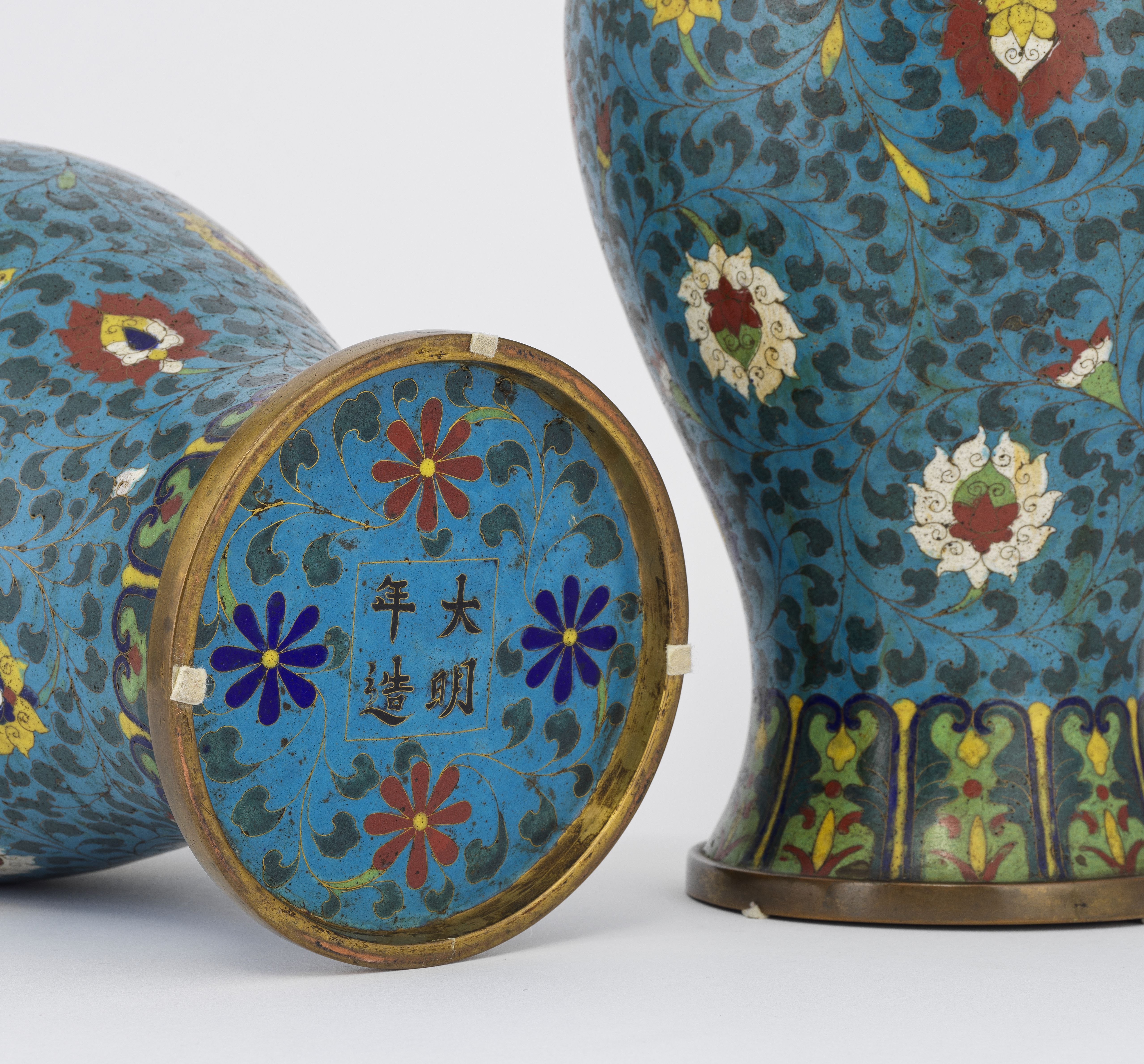 5283. Paire de vases cloisonnés balustre, Chine, XIXe s