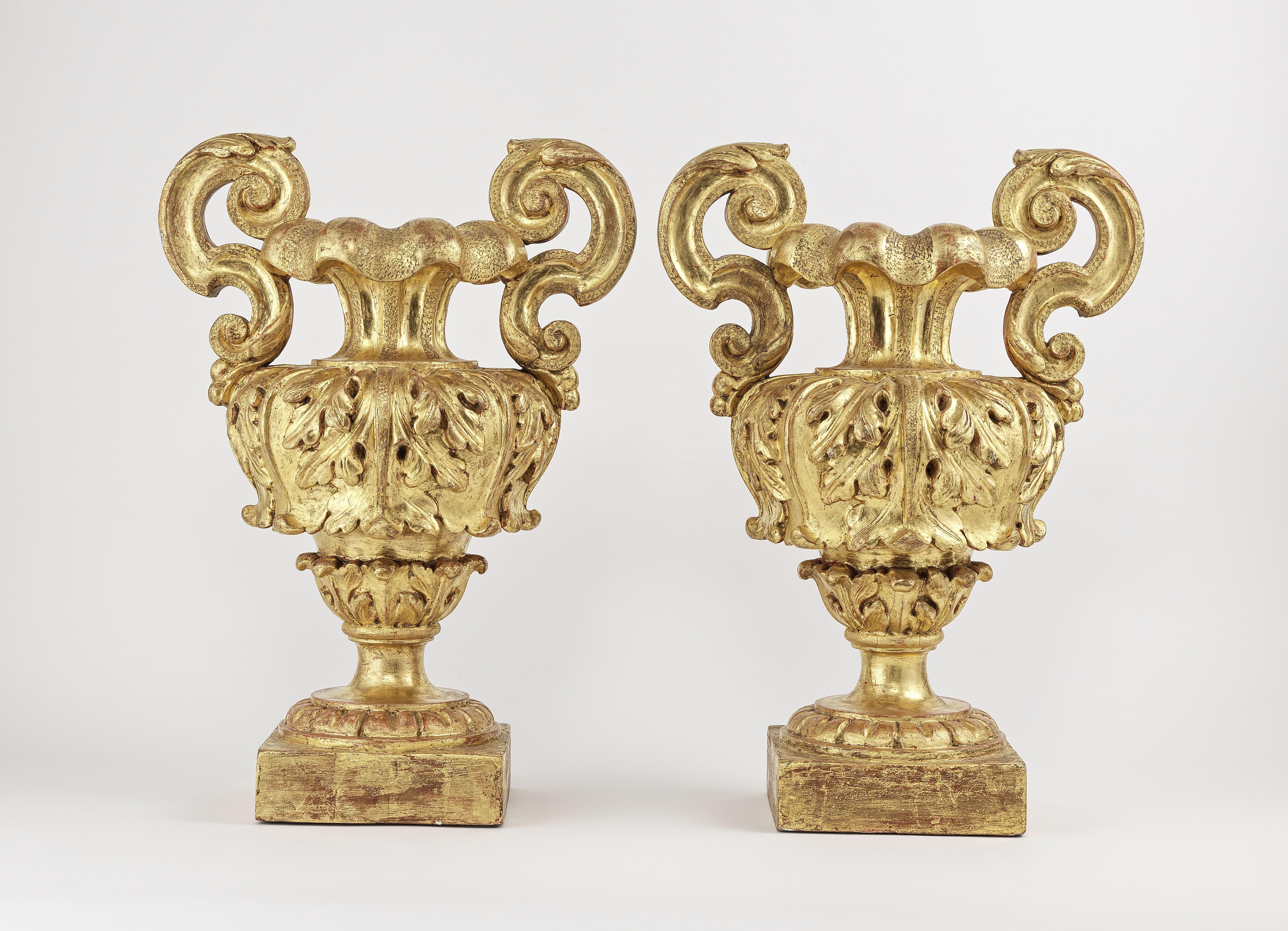 Bois sculpté doré, à motif de feuilles d'acanthe, H 49 cm