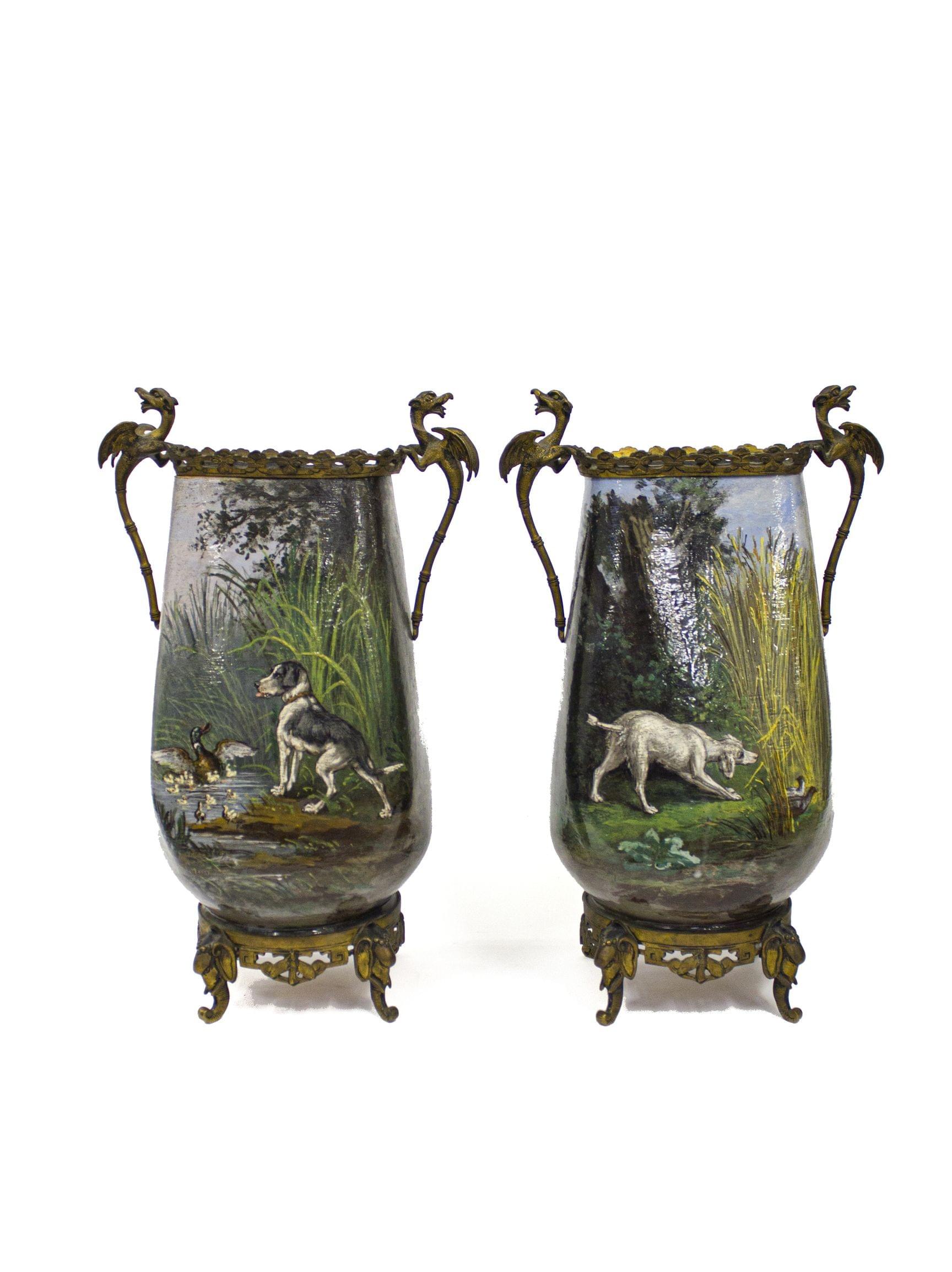 433. Paire de vases urne néoclassiques à décor de biches