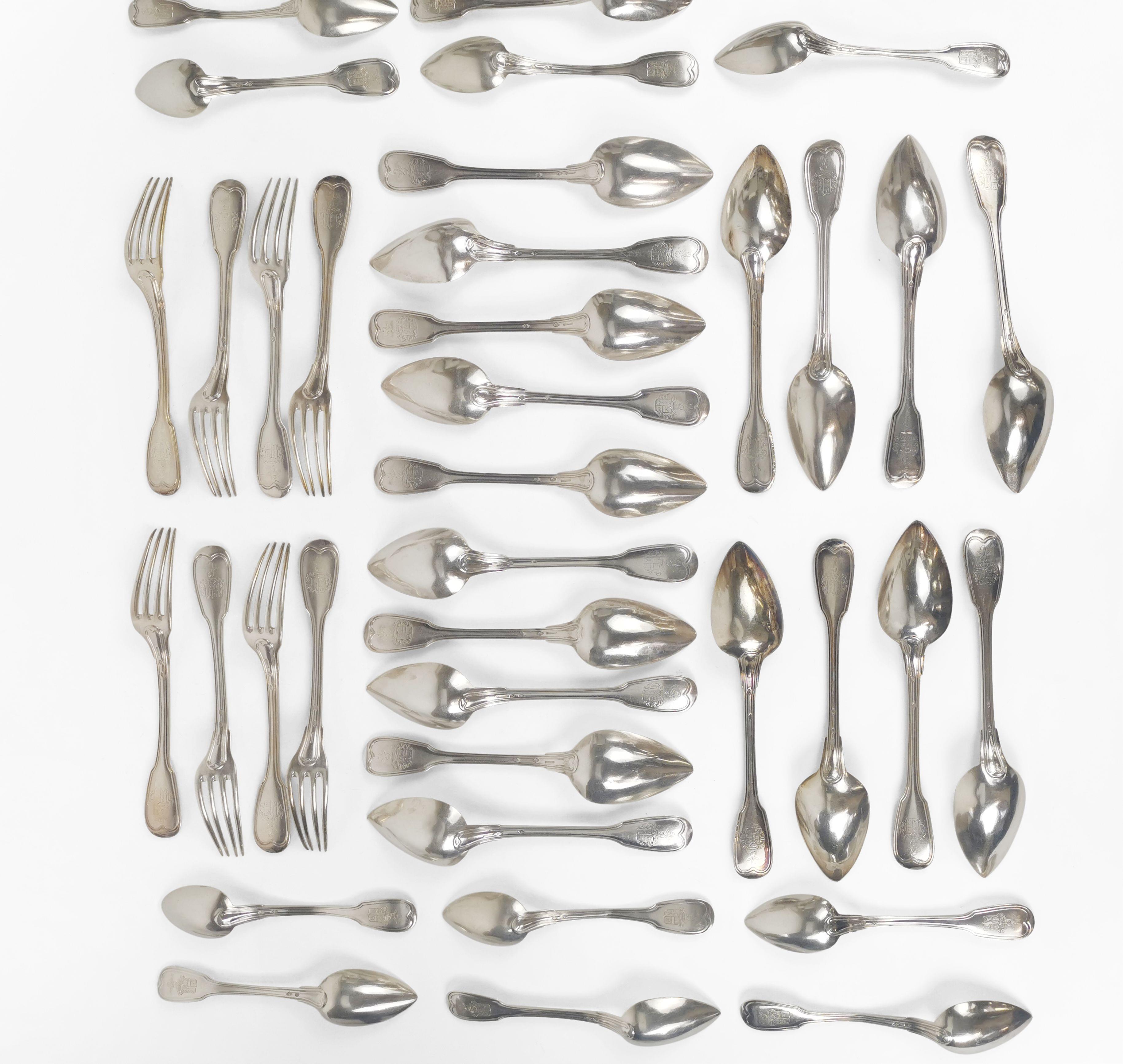 France, argent, comprenant: 6 fourchettes, 6 cuillères, 840 g