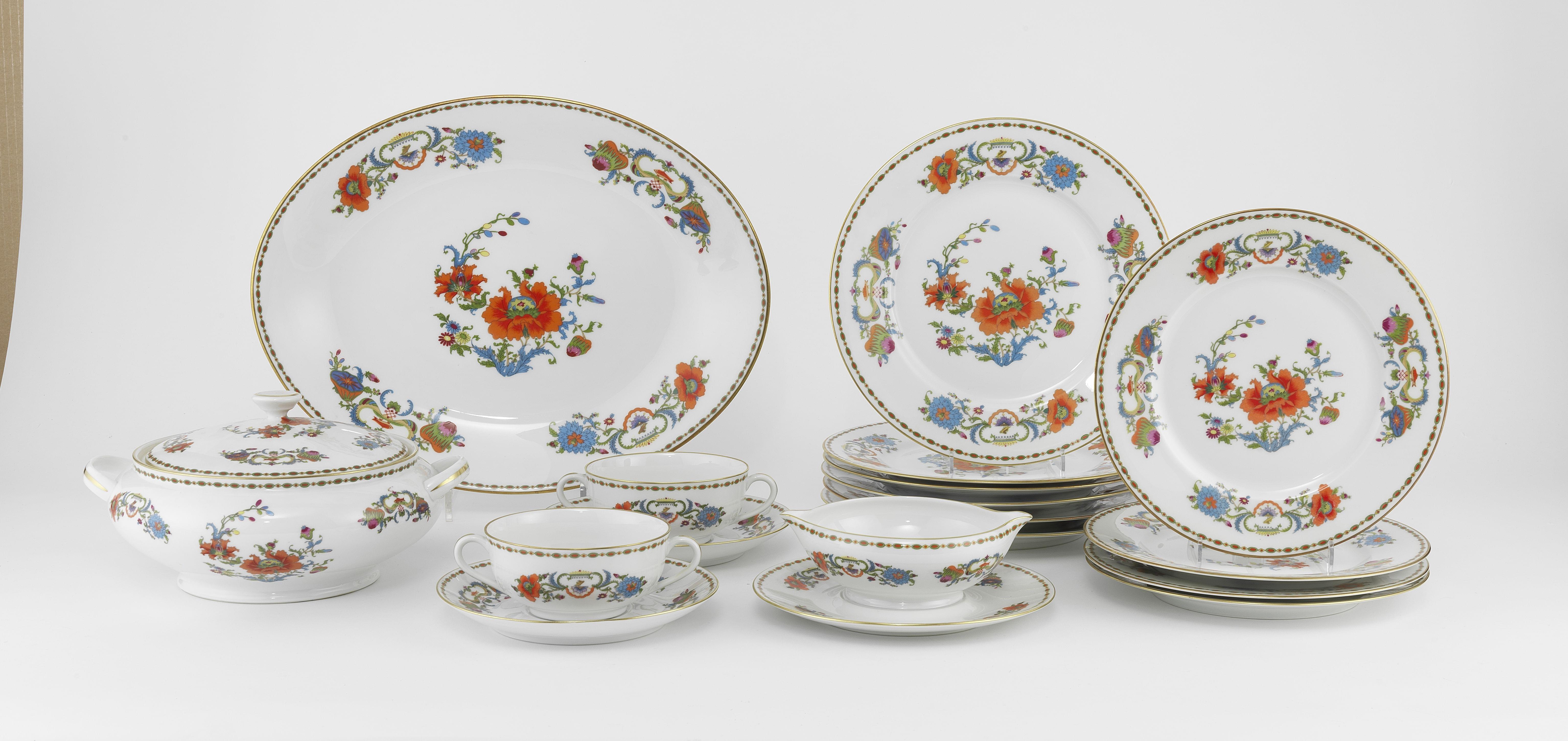 257. Ensemble d'assiettes et plats à bordure de ruban croisé et armor...