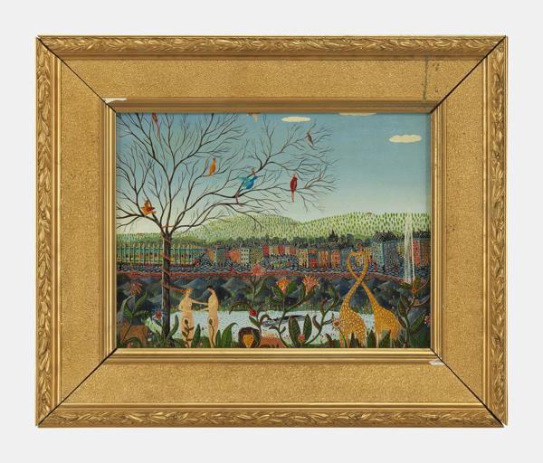 Adam et Eve à Genève, huile sur toile, signée, 33x39 cm