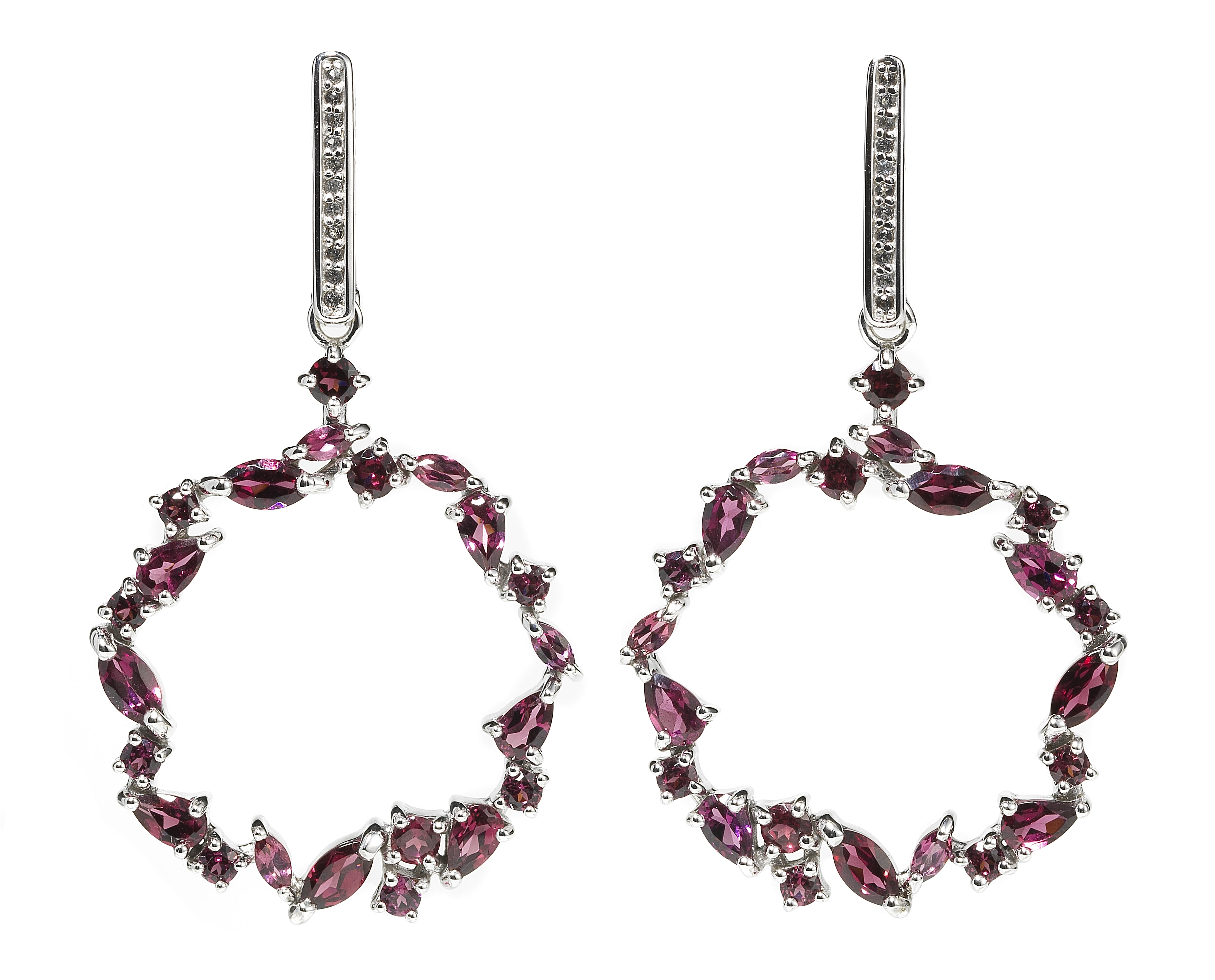 3313. *Pendant d'oreilles circulaires pavés de rhodolites taille marquise et brillant