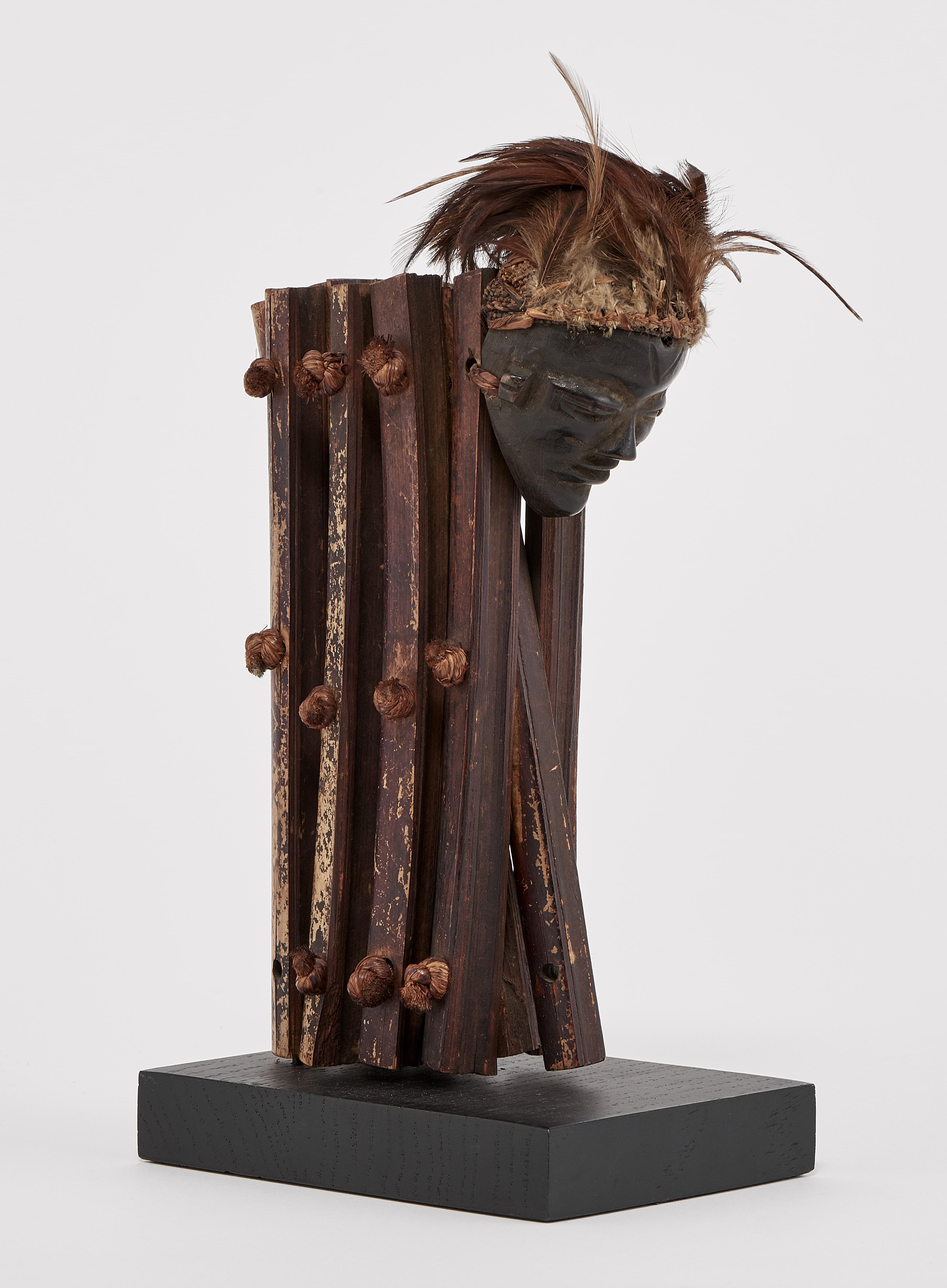 Bois, miroirs et fibres, H 29 cm