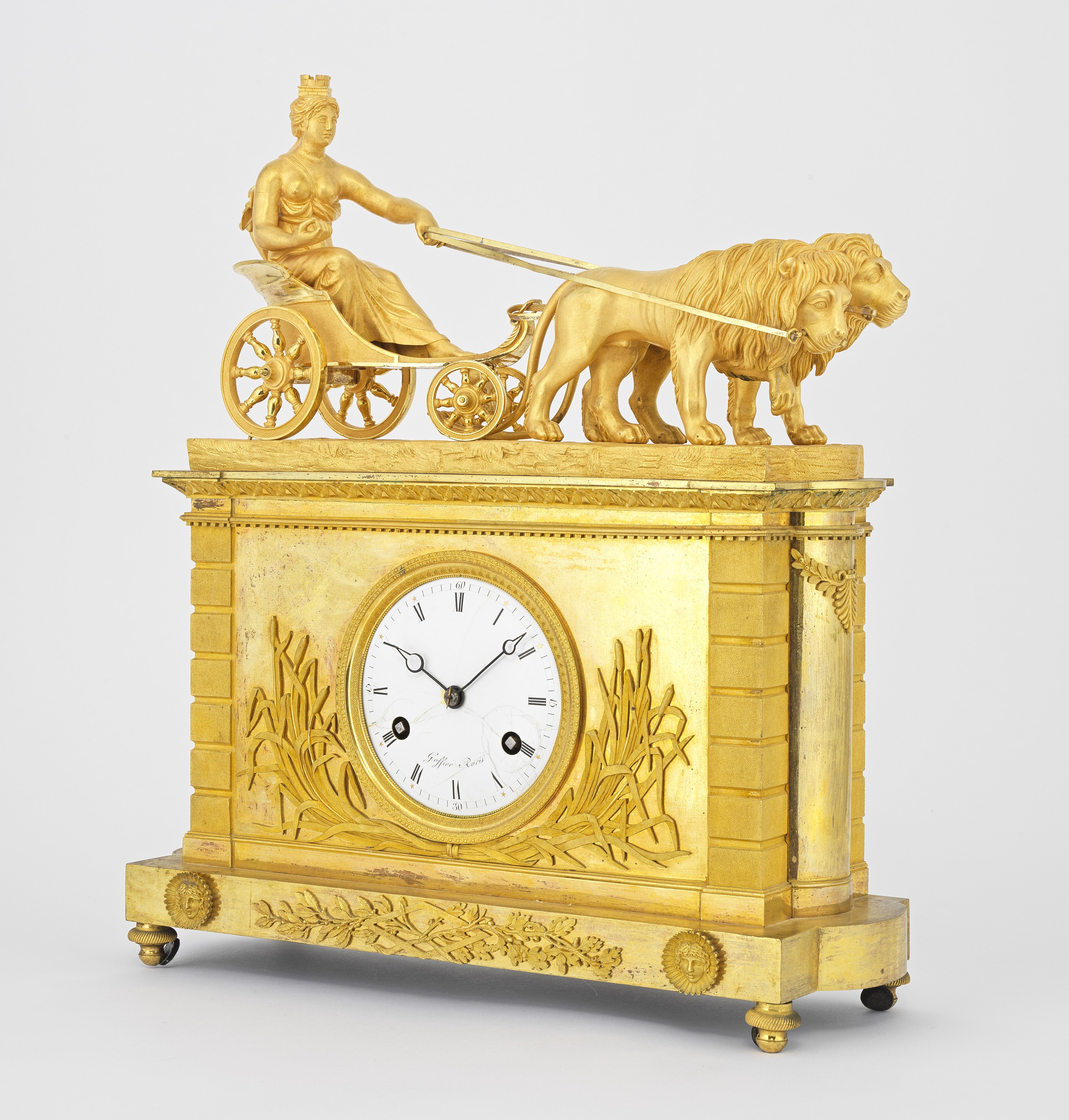 5033. *Pendule d'époque Empire au char tiré par Cybèle
