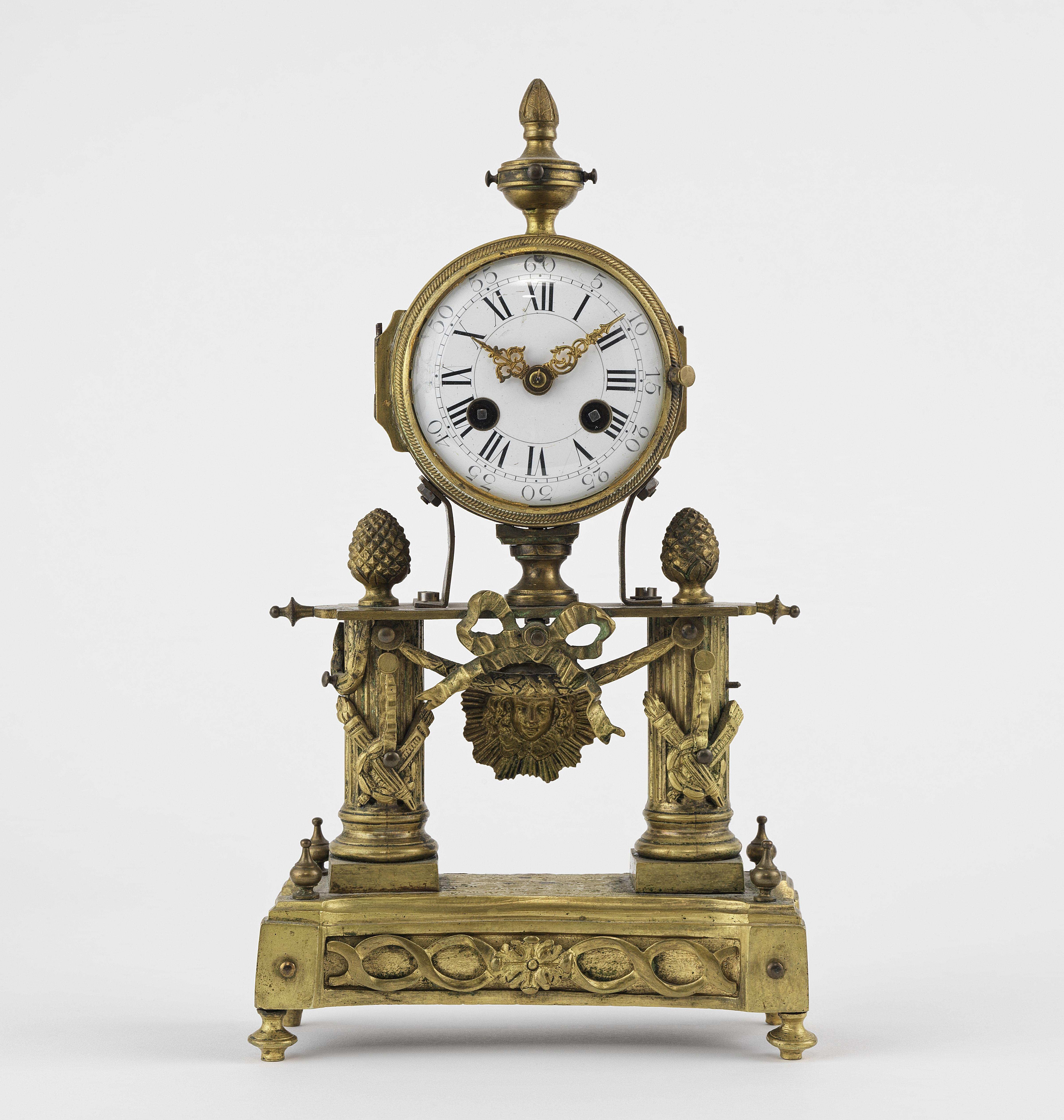 Bronze doré, cadran émaillé blanc, H 30 cm