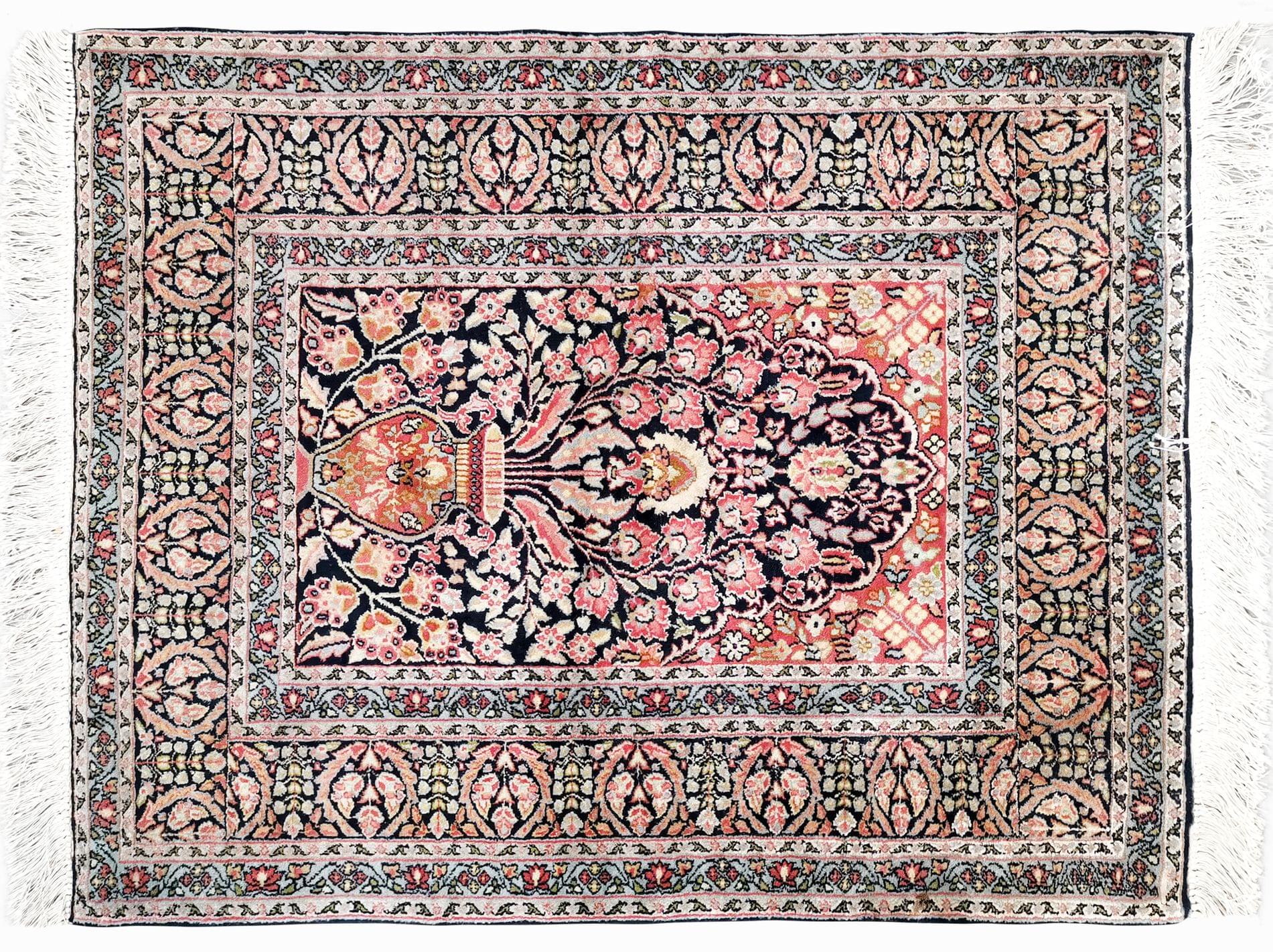 Soie à motif d'un vase sur fond noir, 100x83 cm