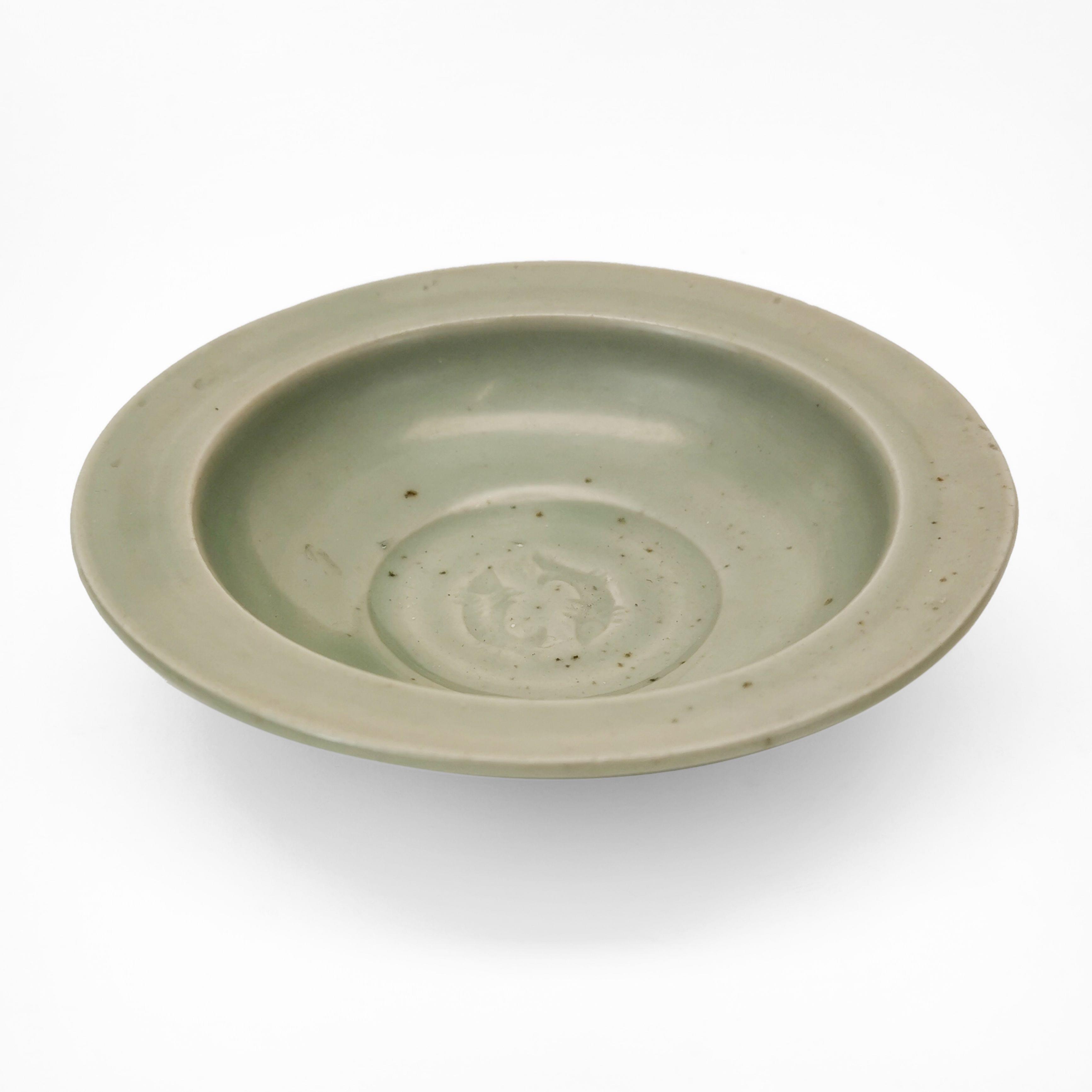 Céramique émaillée céladon à décor de deux poissons en léger relief, D 12,5 cm
