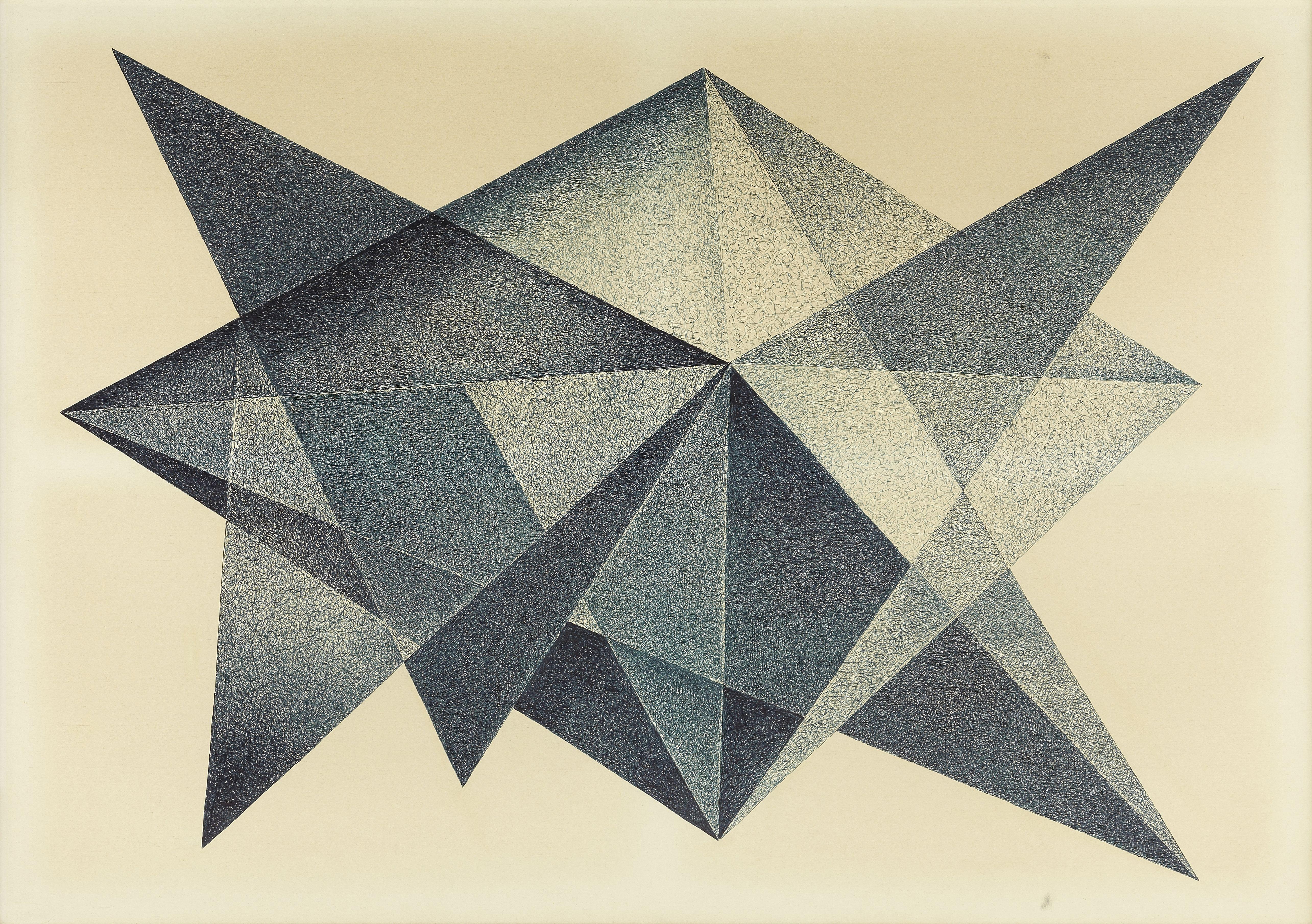 Composition géométrique, stylo sur papier, signée et datée 69 au dos, 71x101 cm. Provenance: Collection Prince et Princesse de Savoie. Provenienza: Collezione Principe e Principessa di Savoia