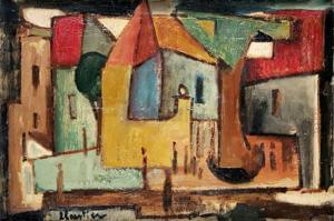 Vue d'une ville, huile sur toile, signée, datée au dos 1960, 28x...